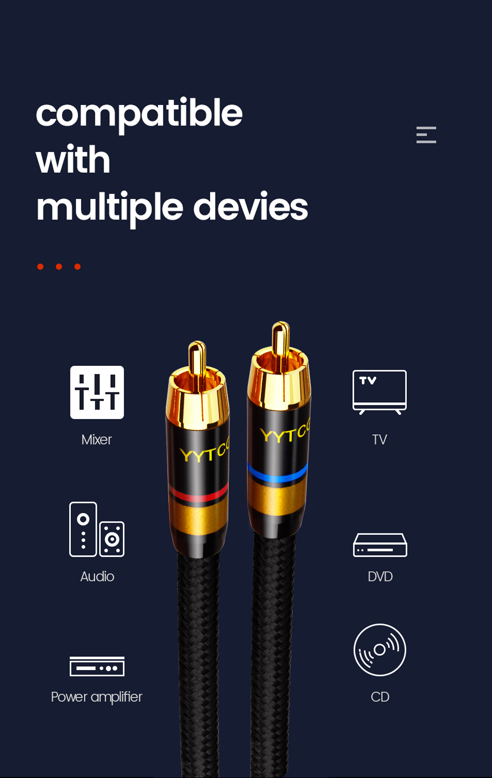 1. С разъемами RCA, которые изготовлены из позолоченного штекера, металлический корпус, а преимущества металлического корпуса могут быть защищены от внешних помех.