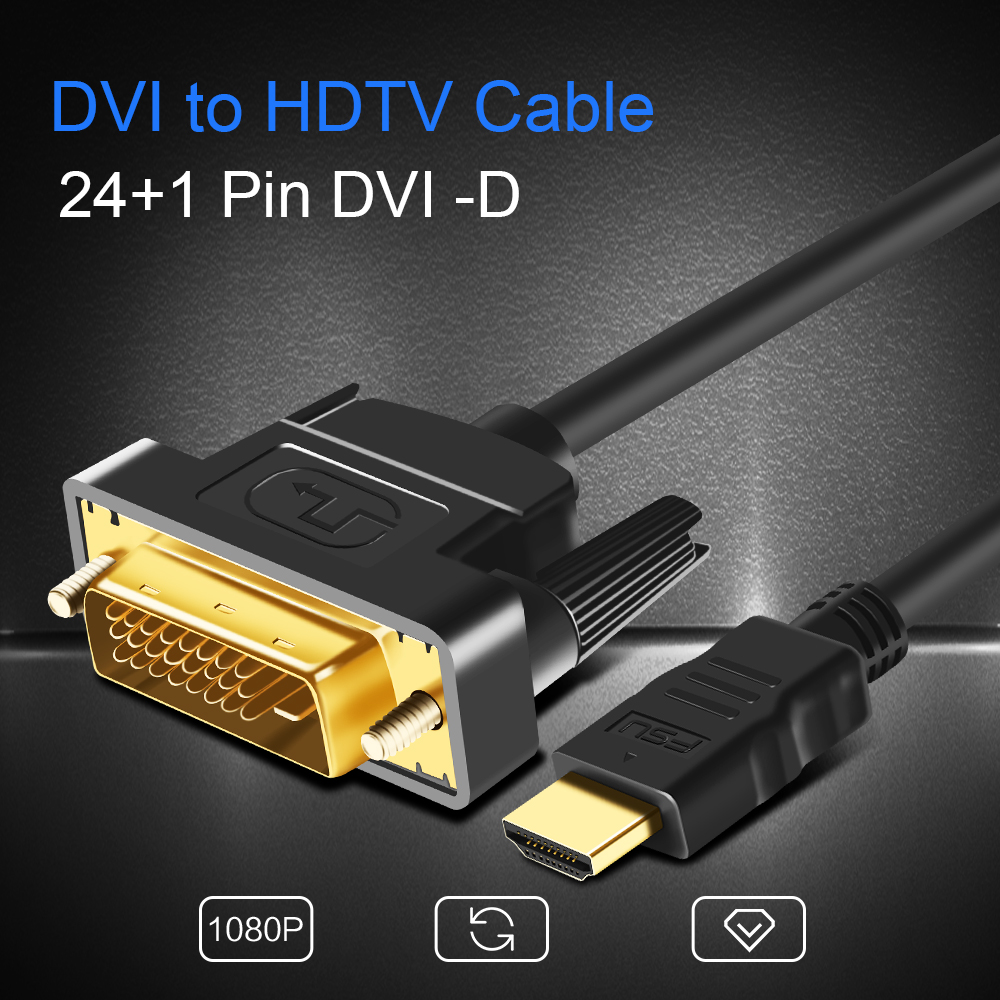 Кабель DUPI HD-DVI, совместимый с разъемами DVI и HDMI, позолоченный, для HDTV, DVD-проекторов, PS5, 4, 3, TVBOX