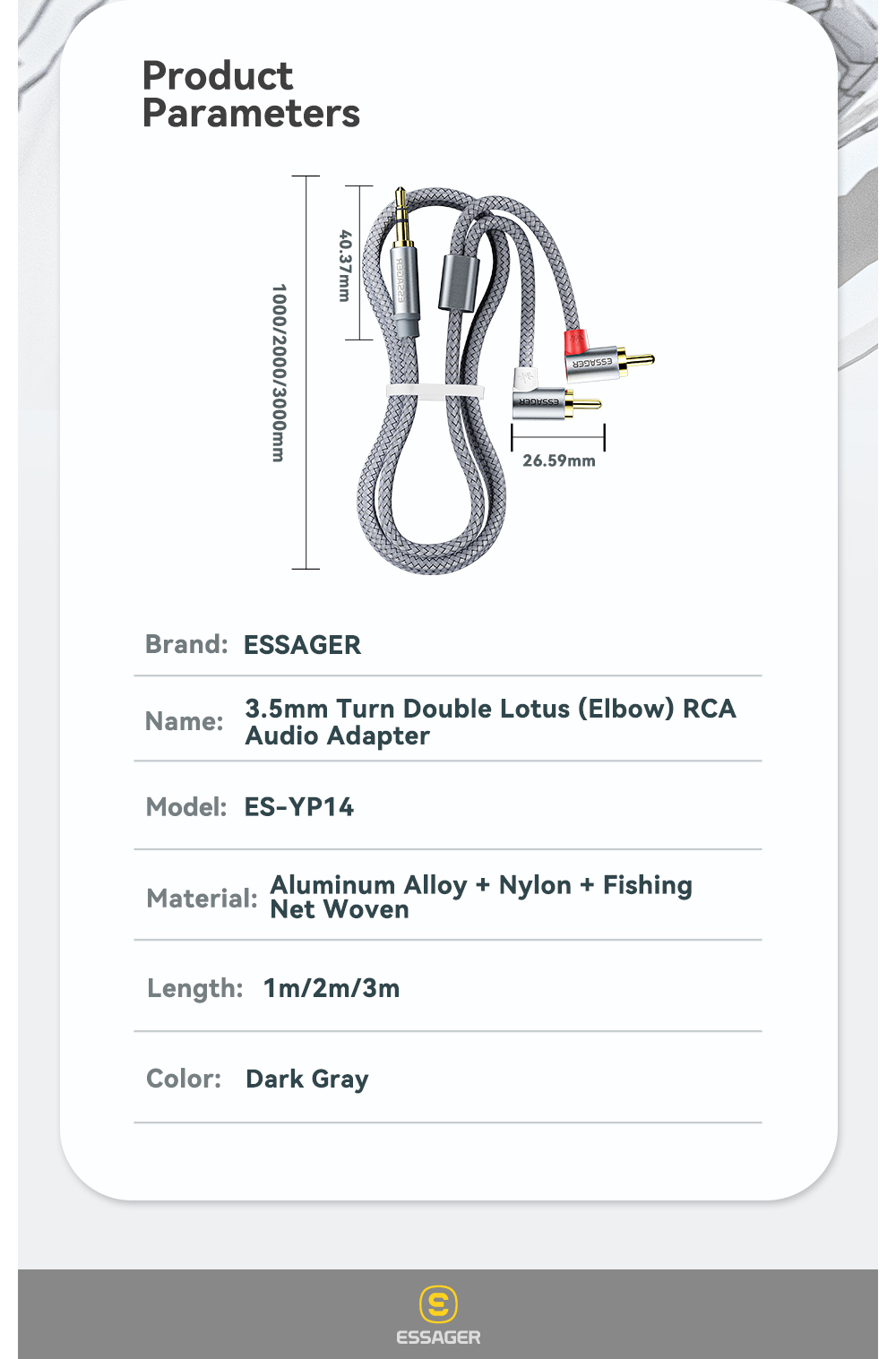 Кабель Essager 90 ° RCA