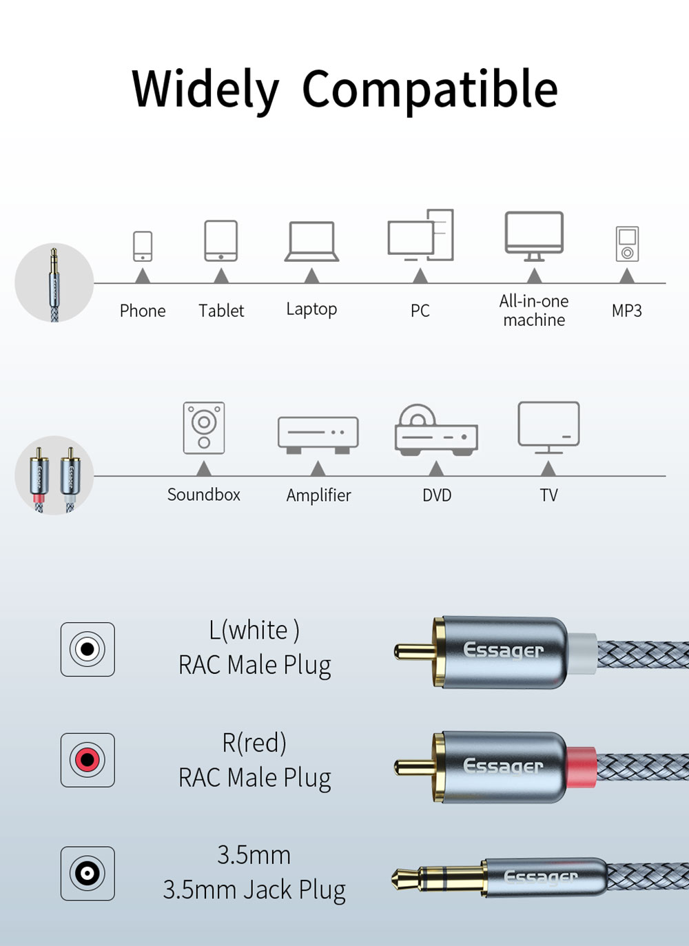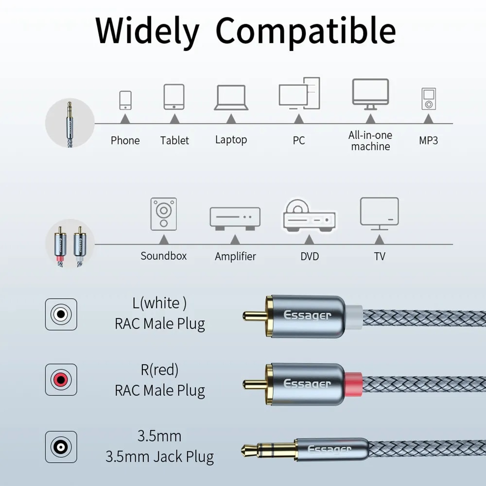 Номер модели Essager 3.5mm to 2 RCA Aux Audio Splitter Cable
