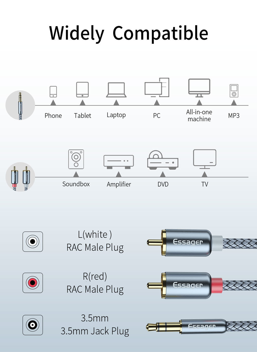 Кабель Essager RCA от 3,5 мм до 2RCA