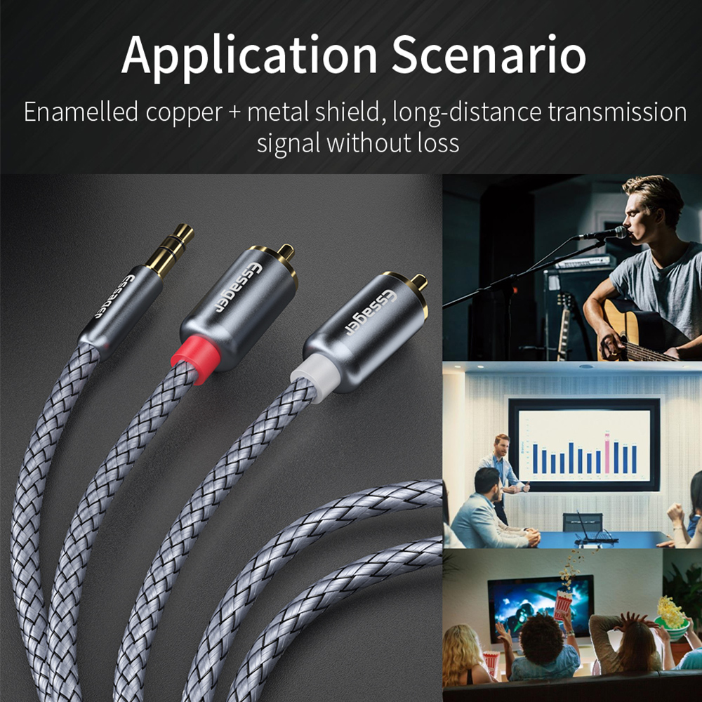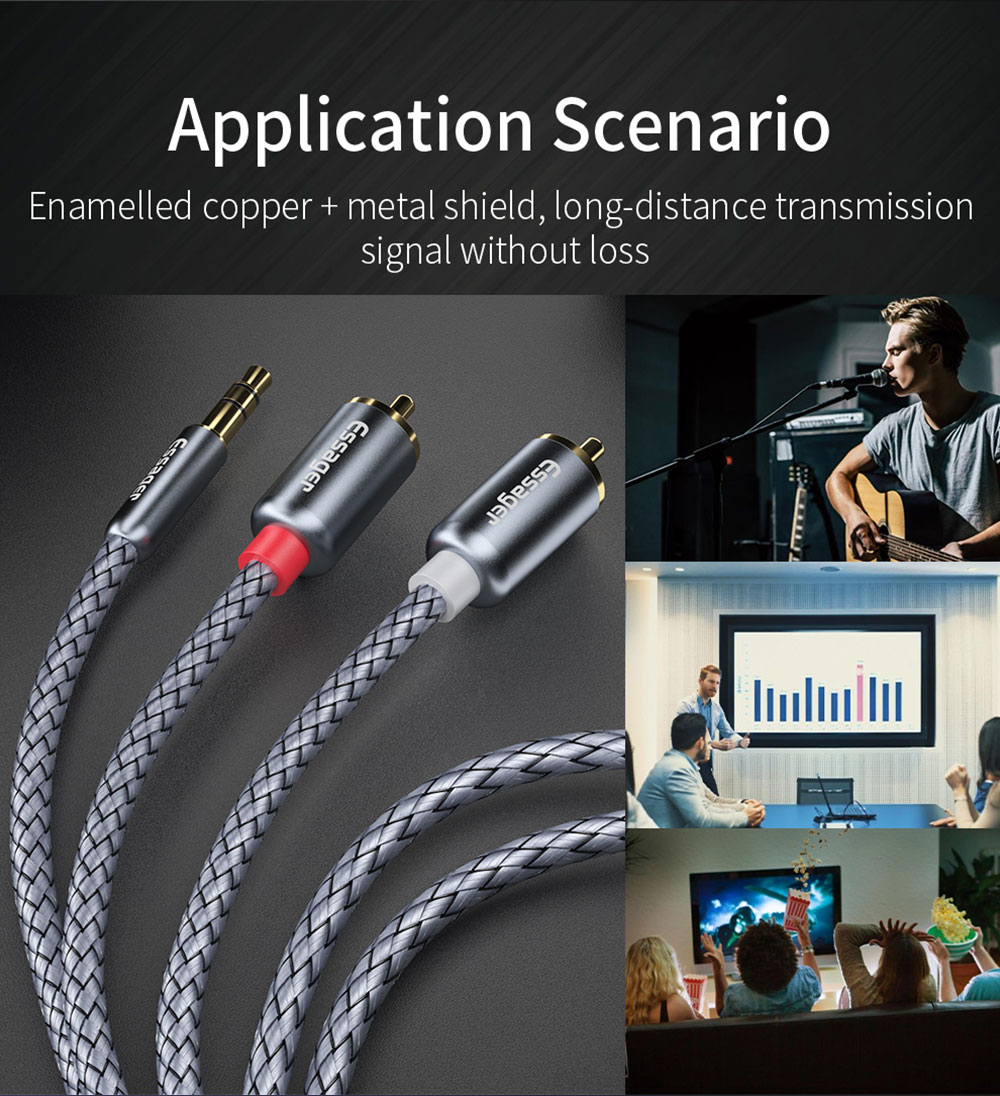 Кабель Essager RCA с разъемом 3,5 мм на 2 RCA Aux