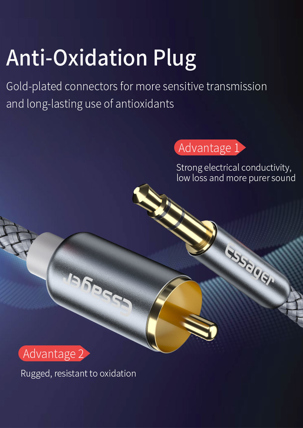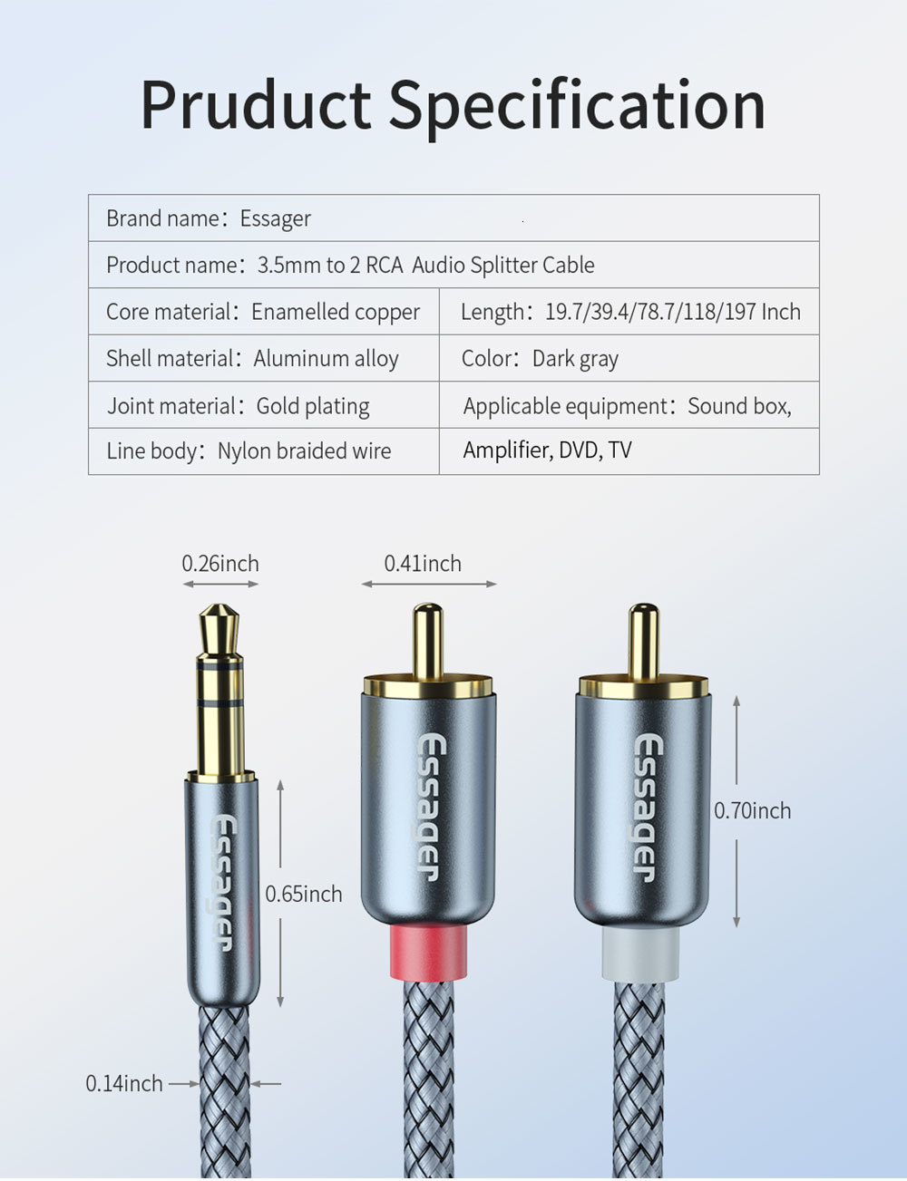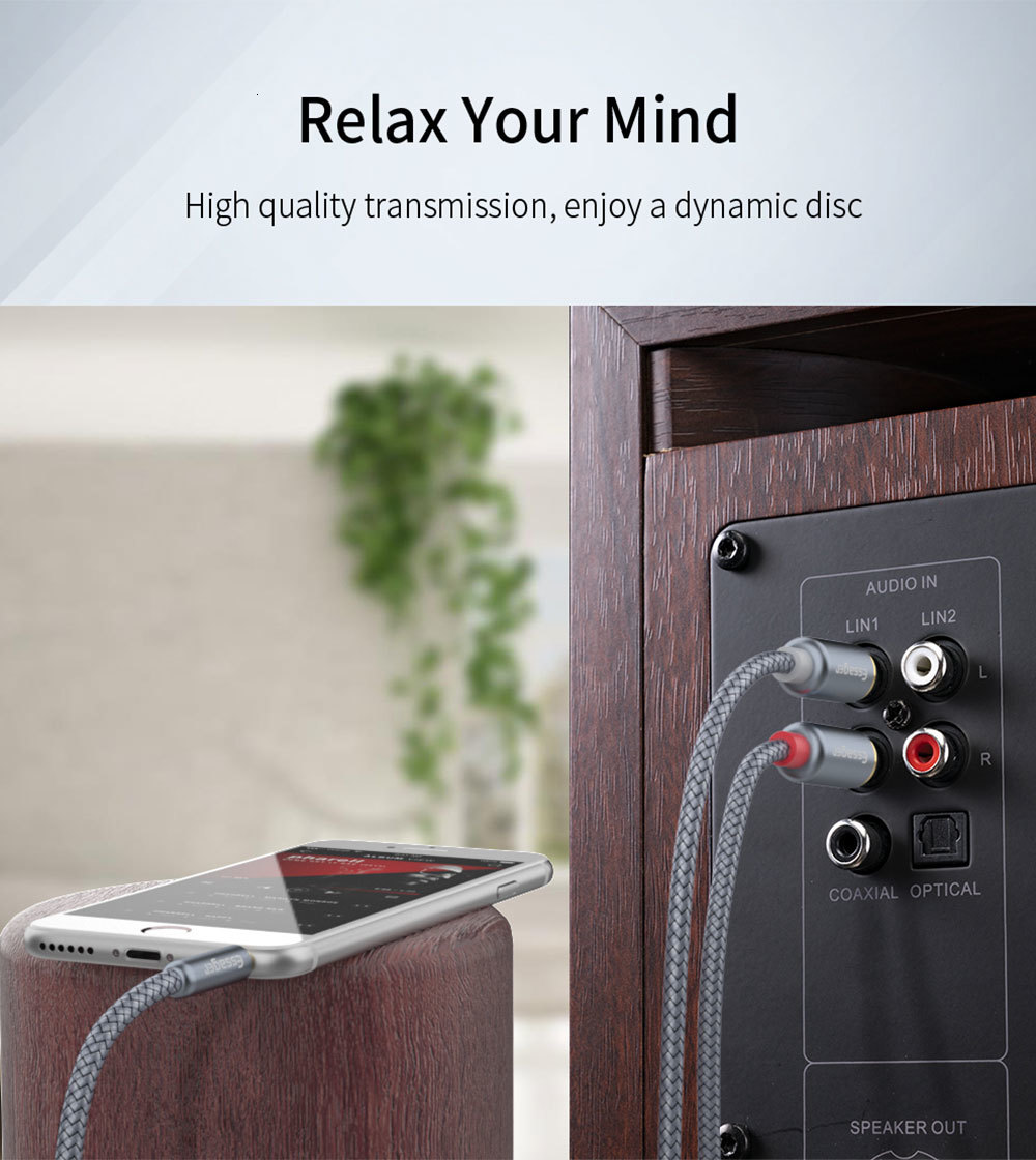 Название продукта: Кабель аудиоадаптера RCA с двойной головкой лотоса 3,5 мм Essager Sound