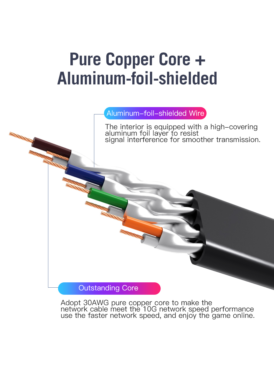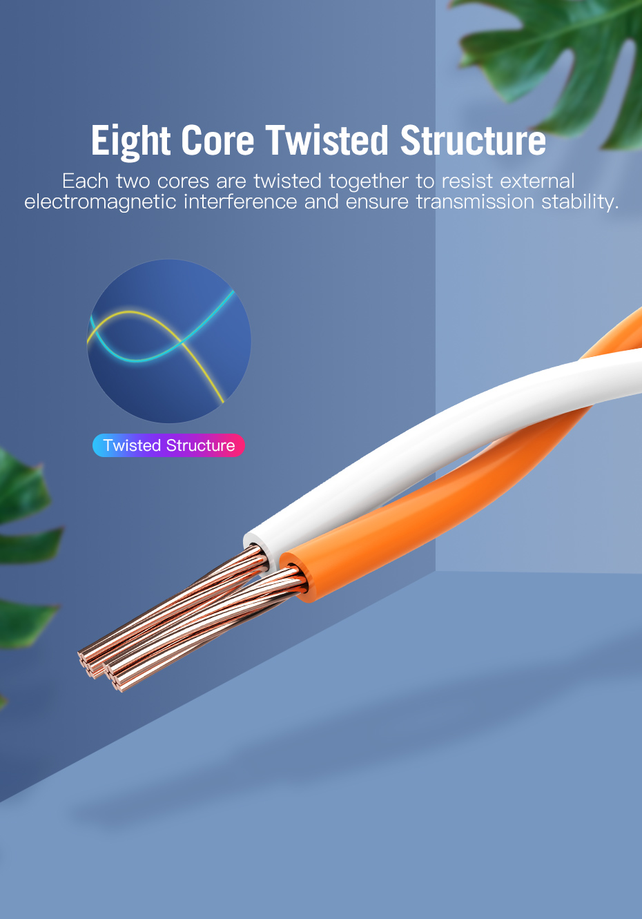Each two cores are twisted together to resist external electromagnetic interference and ensure transmission stability.
