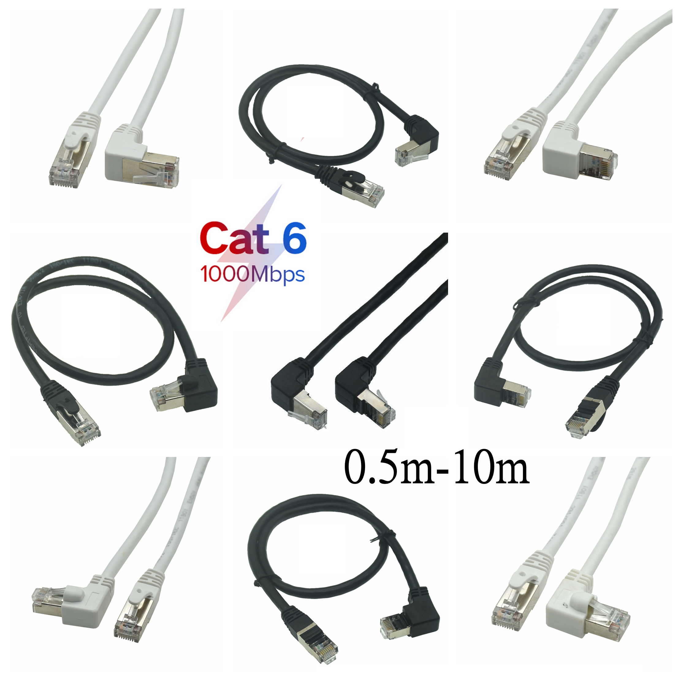 Кабель Ethernet Cat6, белый, 10 м, 5 м, 1 м, сетевой шнур RJ45, соединительный, под прямым углом 90 градусов, короткий кабель Cat6a Lan для ноутбука, маршрутизатора, ТВ-приставки