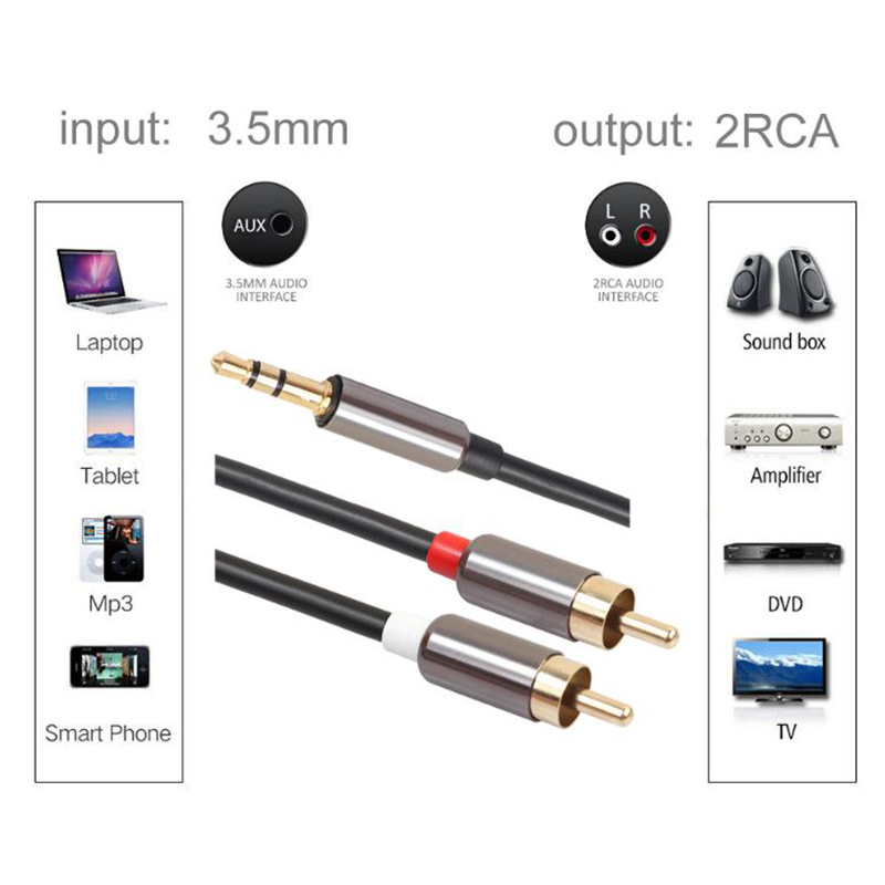 Применение: телевизор, компьютер, CD-плеер, VCD, DVD, MP3, колода и другие источники аудио. С помощью этой линии, вы можете выводить звуковой сигнал на CD-плеер mp3 или других 3,5 мм устройства, в том числе к динамику.