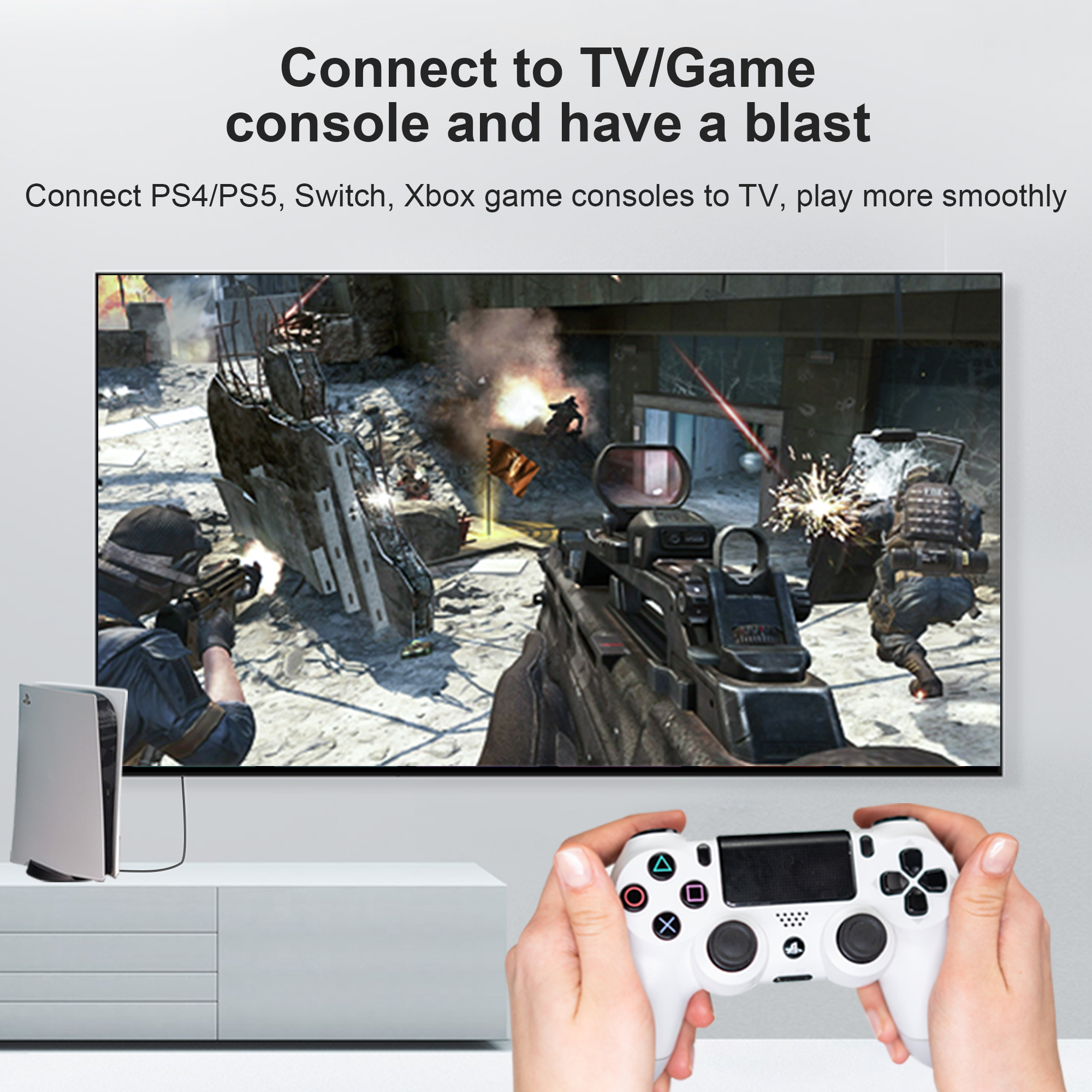 Совместимость с HDTV, TV Stick, Samsung TV, Apple TV, Roku Stick, Google Chromecast, Blu-Ray Player, 3D-телевизором, AV-ресивером, HD-кабелем, Boxee, Xbox360, Xbox One, PSS ,PS4 Pro, игровая станция PS3, Wii U, гарнитура Oculus Rift VR, гарнитура PlayStation VR, ПК с Windows 10 и RTX3070, RTX3080, RTX3090 или любое устройство HD со стандартным HDMI