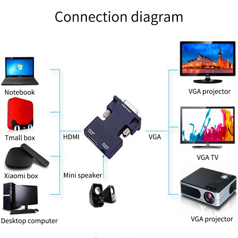 -4-Преобразование: он может конвертировать полную совместимость с HDMI в видео VGA.
