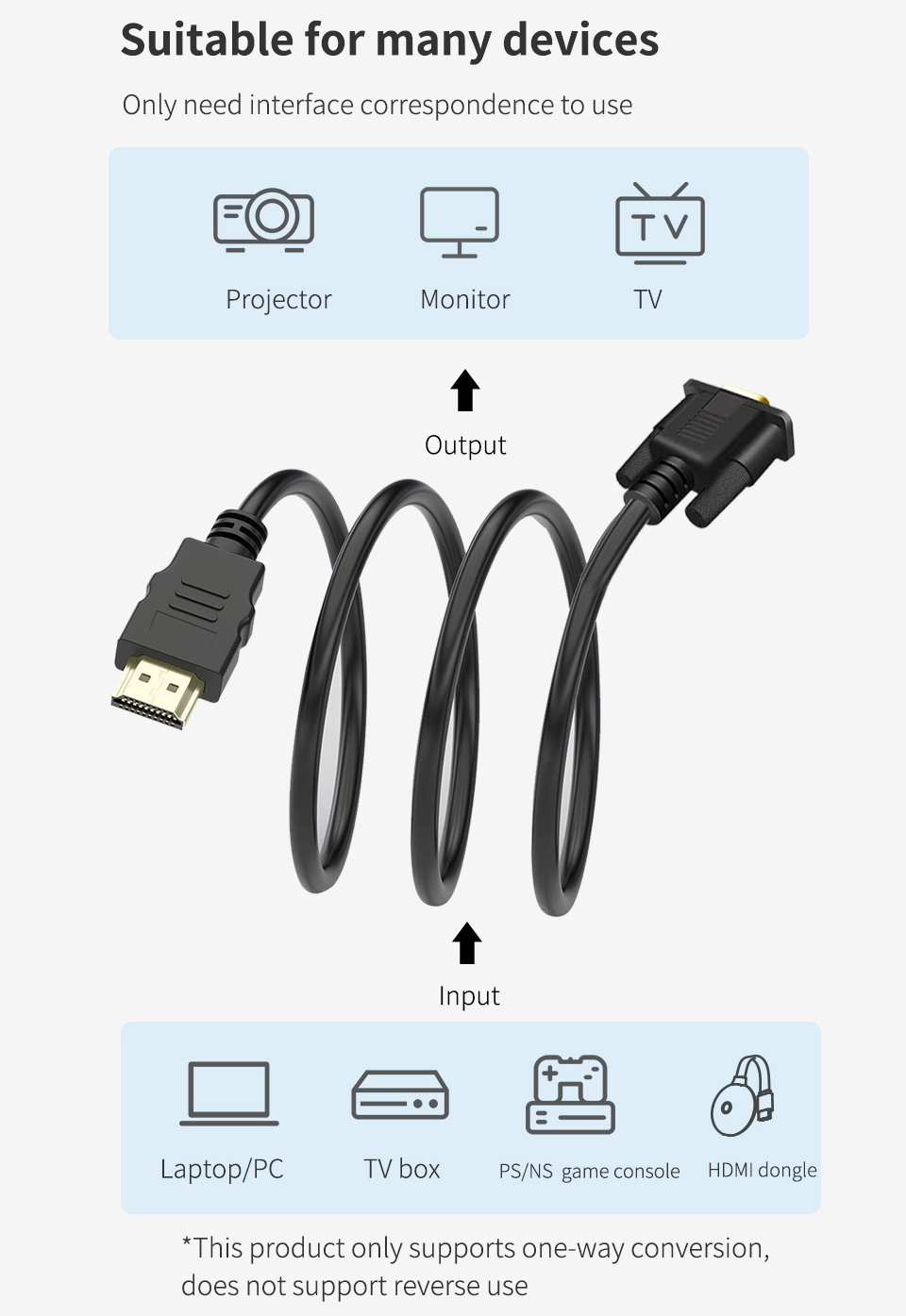 ПРЕВОСХОДНАЯ СТАБИЛЬНОСТЬ-Встроенная усовершенствованная микросхема IC преобразует цифровой сигнал HDMI в аналоговый сигнал VGA; Это НЕ двунаправленный преобразователь и не может передавать сигналы с VGA на HDMI.