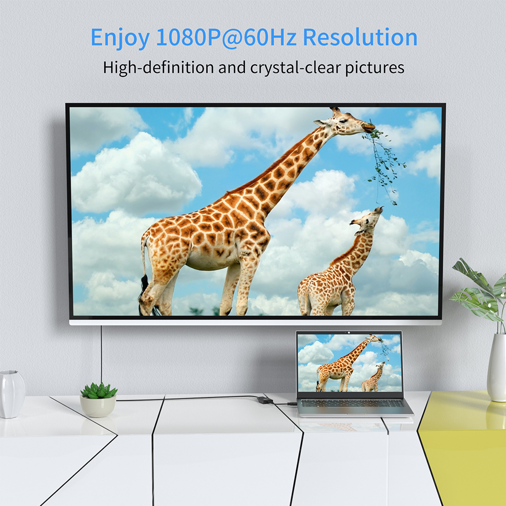 2. ПРЕВОСХОДНАЯ СТАБИЛЬНОСТЬ-Встроенная усовершенствованная микросхема IC преобразует цифровой сигнал HDMI в аналоговый сигнал VGA; Это НЕ двунаправленный преобразователь и не может передавать сигналы с VGA на HDMI.