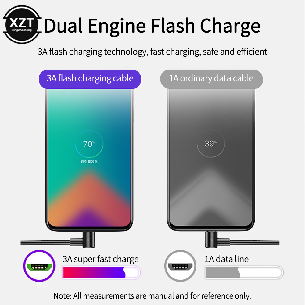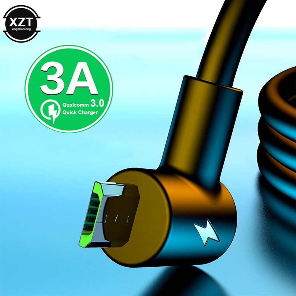 Кабель Micro USB с углом 90 градусов, 3A, технология двойной зарядки, 1 м, 1,5 м, 2 м для Samsung, Xiaomi, Redmi