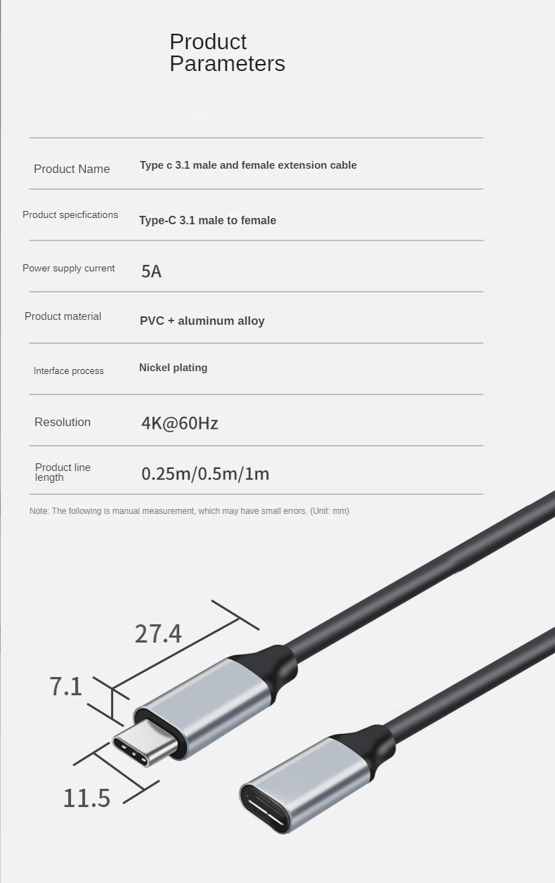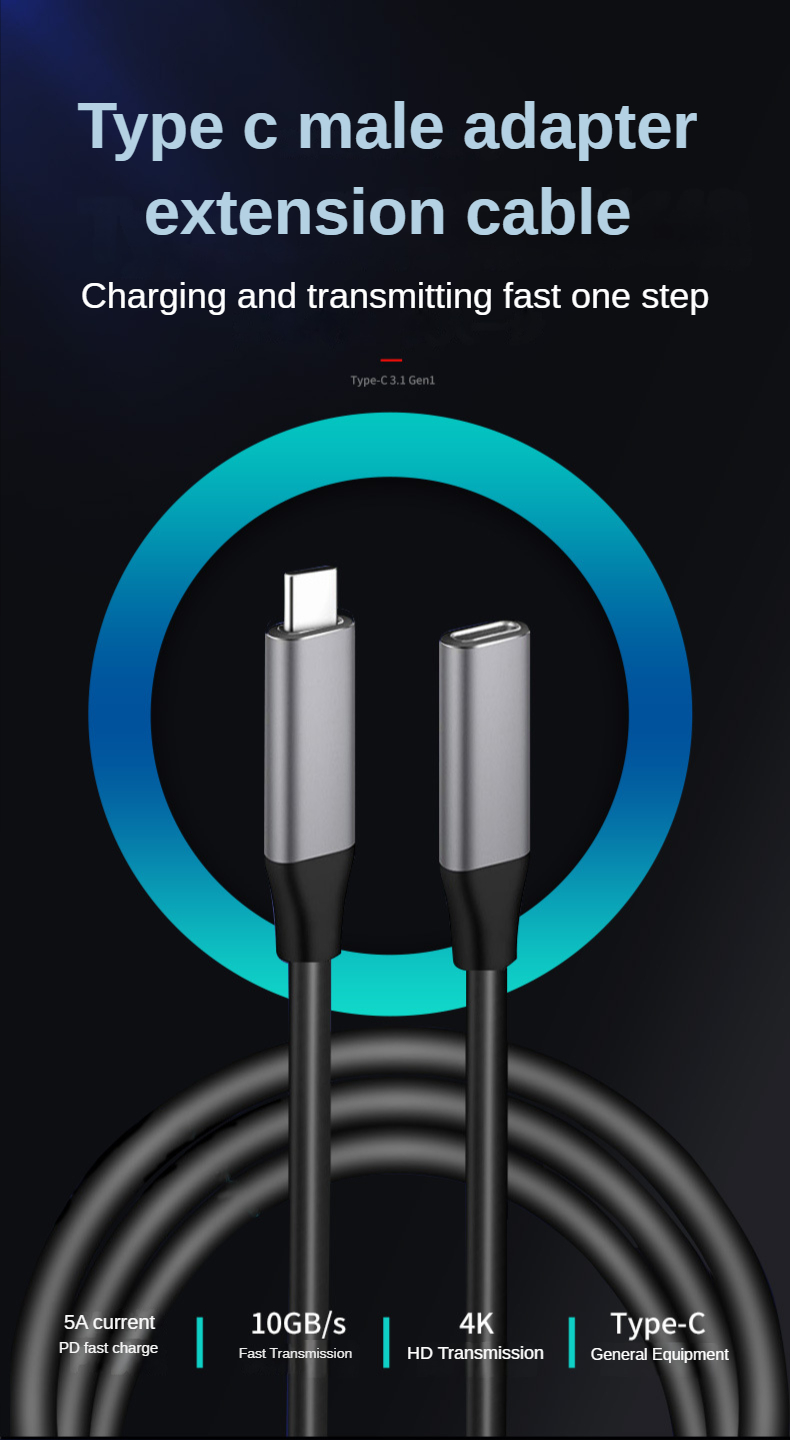 Elbows10Gb PD100w USB C3.1Gen2 Type-C Расширение данных 100 Вт 5A 4K Зарядка PD VR OTG Кабель-удлинитель Шнур C-C для телефона Macbook