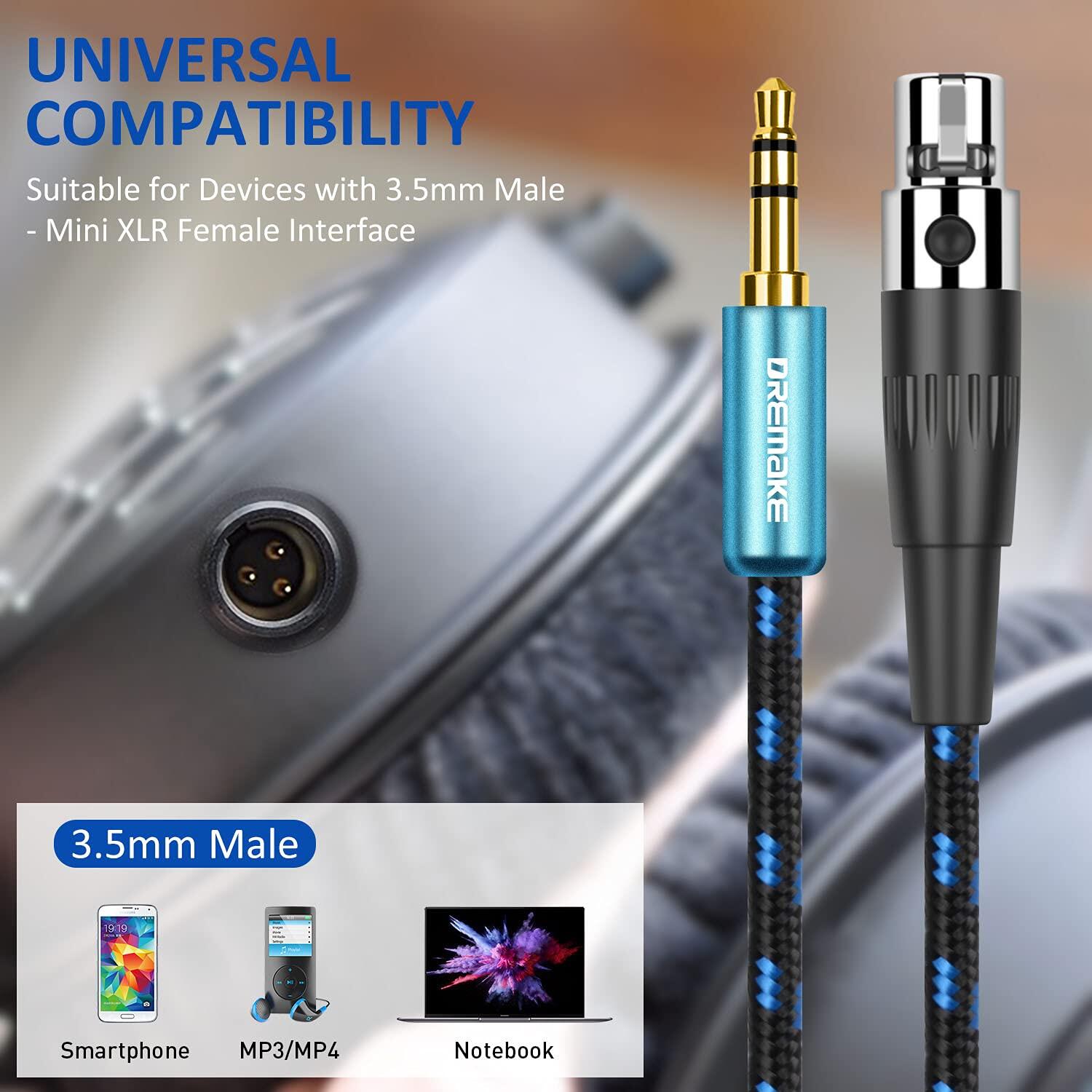 Кабель-переходник DREMAKE 3-контактный Mini XLR на разъем 3,5 мм, стерео аудио 1/8 дюйма TRS 3,5 мм