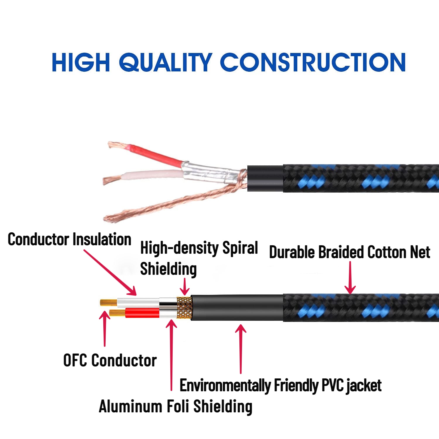 -Материал кабеля: бескислородная медь с экранированием из фольги.