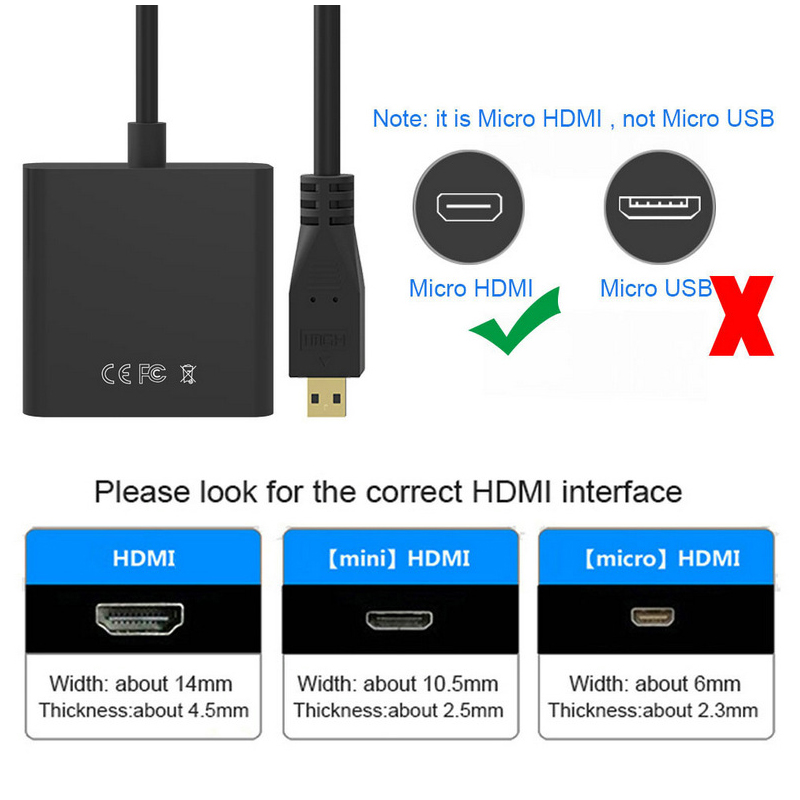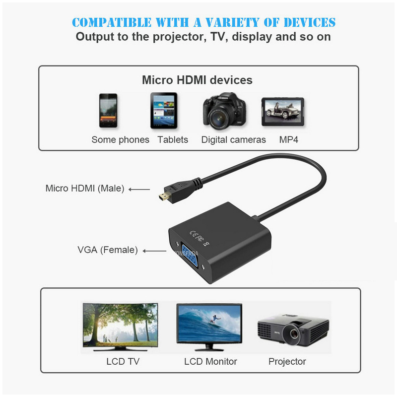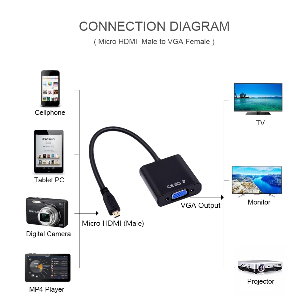 1 X Micro HDMI-совместимый с кабелем для передачи данных адаптера VGA