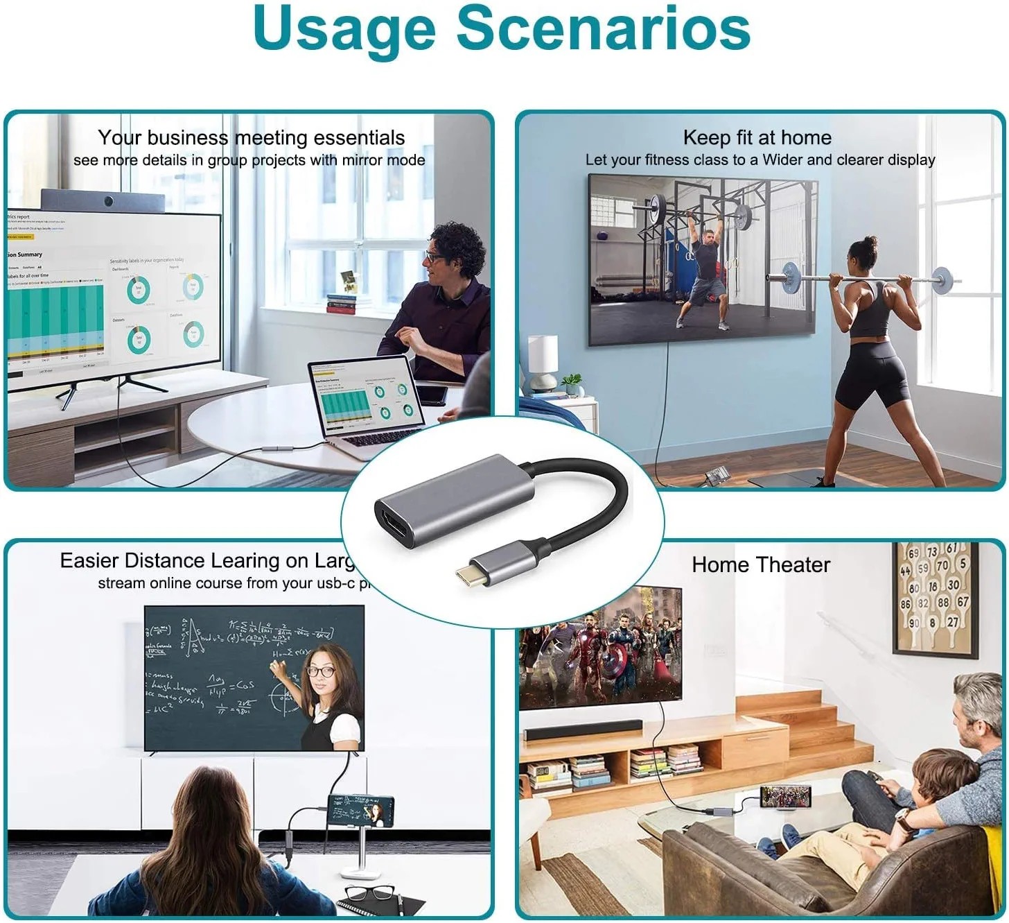 2. Конвертер, совместимый с Type-C в HDMI, простой в использовании, подключи и работай, нет необходимости в подключении Wi-Fi, нет необходимости в личной точке доступа/эфире, нет необходимости в приложении/драйвере. Он обеспечивает разрешение до 3840*2160 при 30 Гц (4K 30 Гц) и обратную совместимость с 480p,360p,720p,1080p.