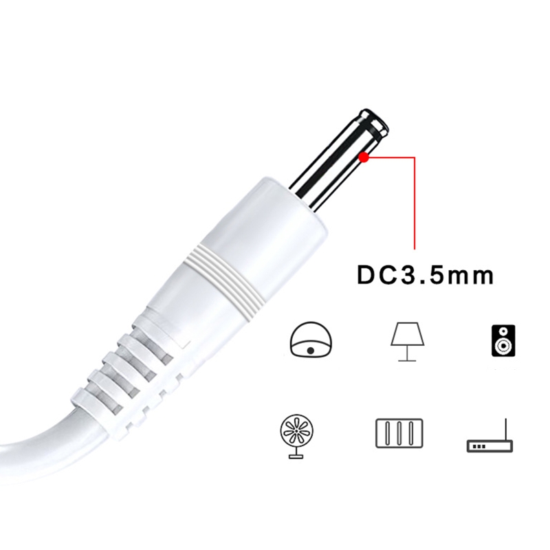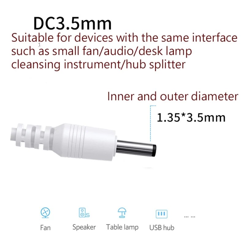 Размер разъема постоянного тока составляет OD: 3,5 мм и ID: 1,35 мм. Пожалуйста, проверьте, подходит ли он к разъему питания на ваших устройствах.