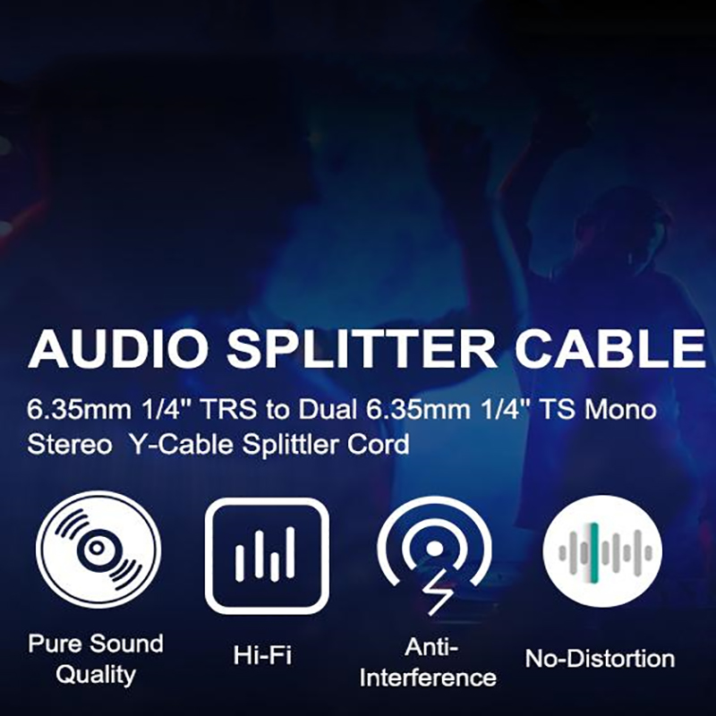 1. Стерео коммутационный кабель: Профессиональный 1/4 ''TRS для двойного 1/4" TS моно стерео коммутационный кабель, он применяется для разделения 1/4 "стереосигнала на два 1/4" моно, предназначен для подключения сопряжения и подключения профессионального аудиооборудования.