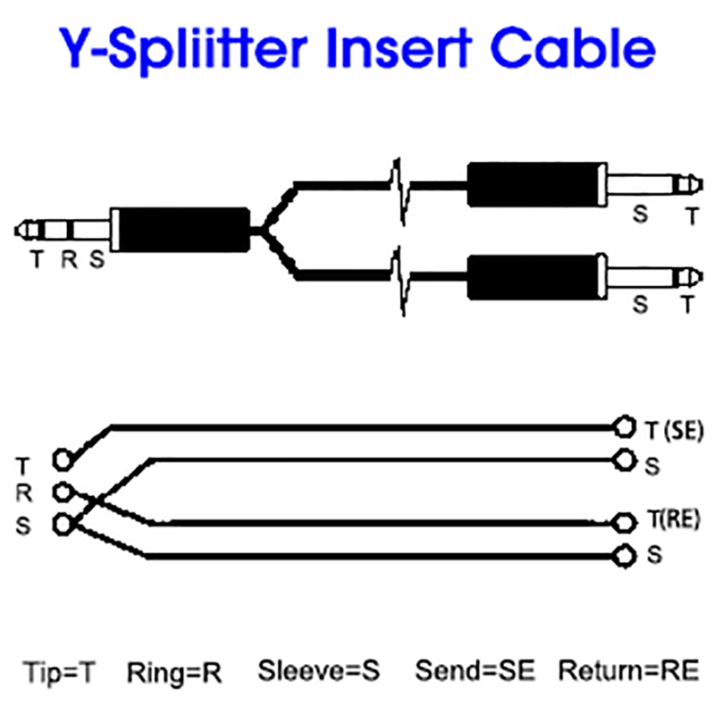 Двойной 1/4 ''Вставить Кабель Схемы Проводки Вставить Кабель: В Основном предназначен для аудиоконсоли, предусилителей, усилителя, который имеет передачу на кончике разъема 1/4 дюйма TRS, прием на кольце разъема 1/4 дюйма TRS. Вы можете использовать его для прямой вставки аудиоустройства (например, аудиокомпрессора, эквалайзера...). Разделите стереосигнал на два моно сигнала или объедините два моно сигнала в стереосигнал, так что это двунаправленный аудиокабель.