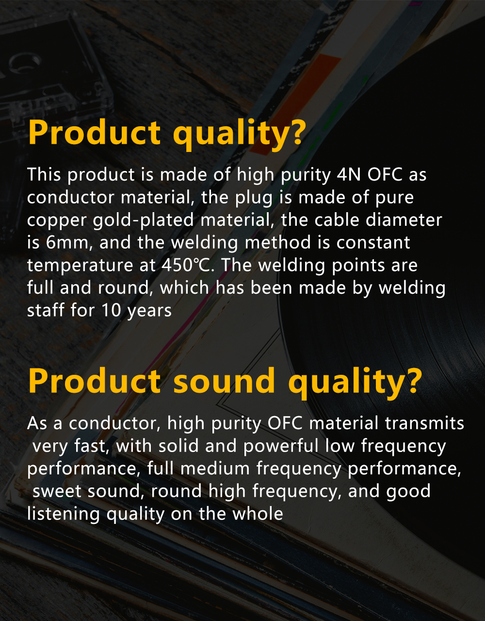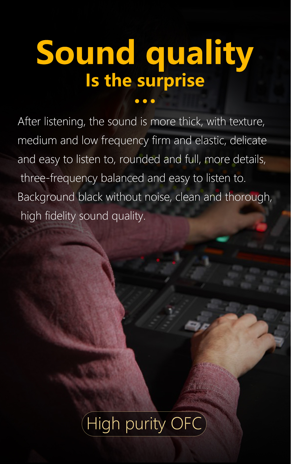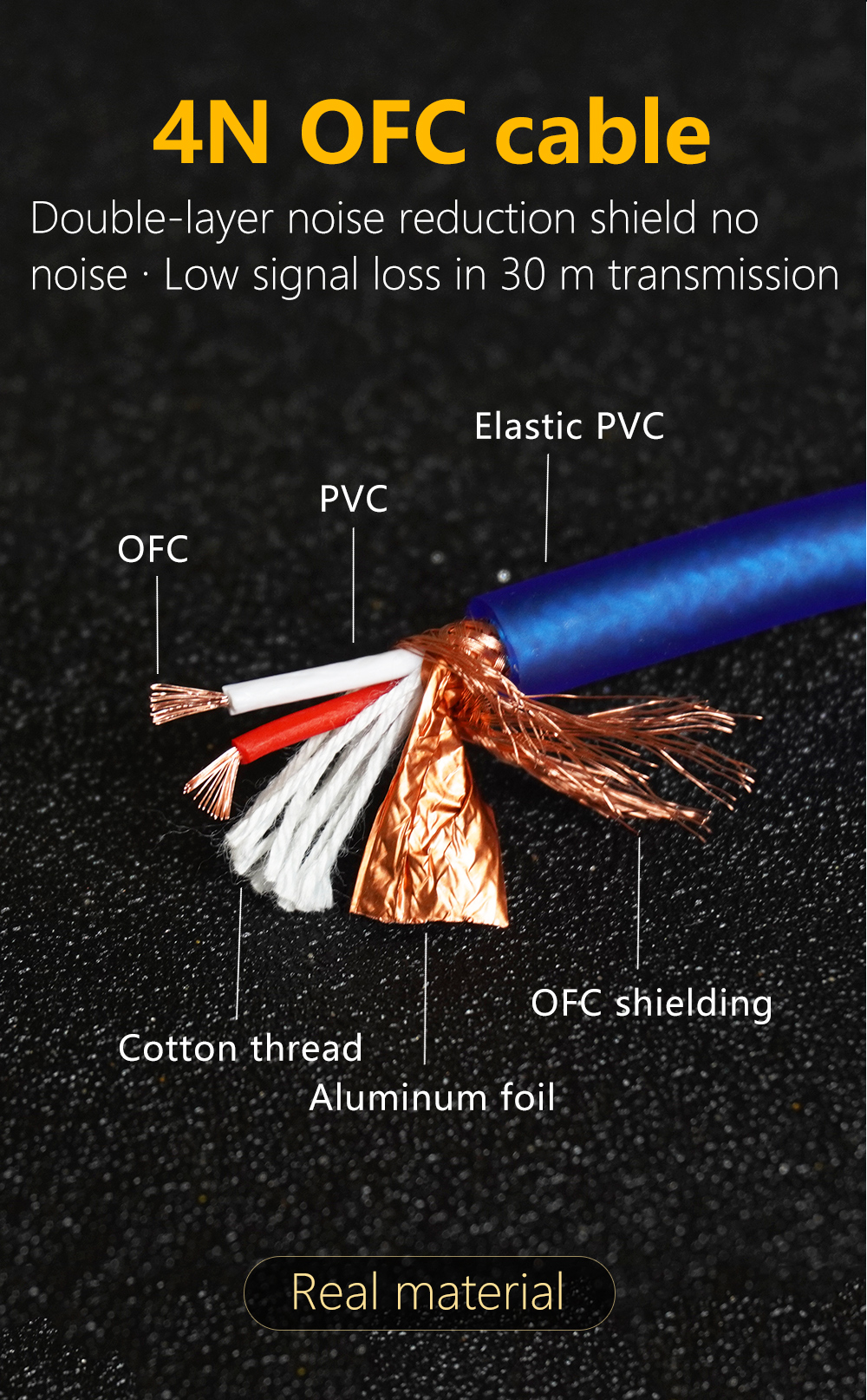 2. Кабель 4N OFC имеет характеристики низкой потери сигнала и стабильной передачи, что гарантирует, что качество звука не будет снижено в процессе передачи, поэтому он очень популярен среди энтузиастов HIFI.