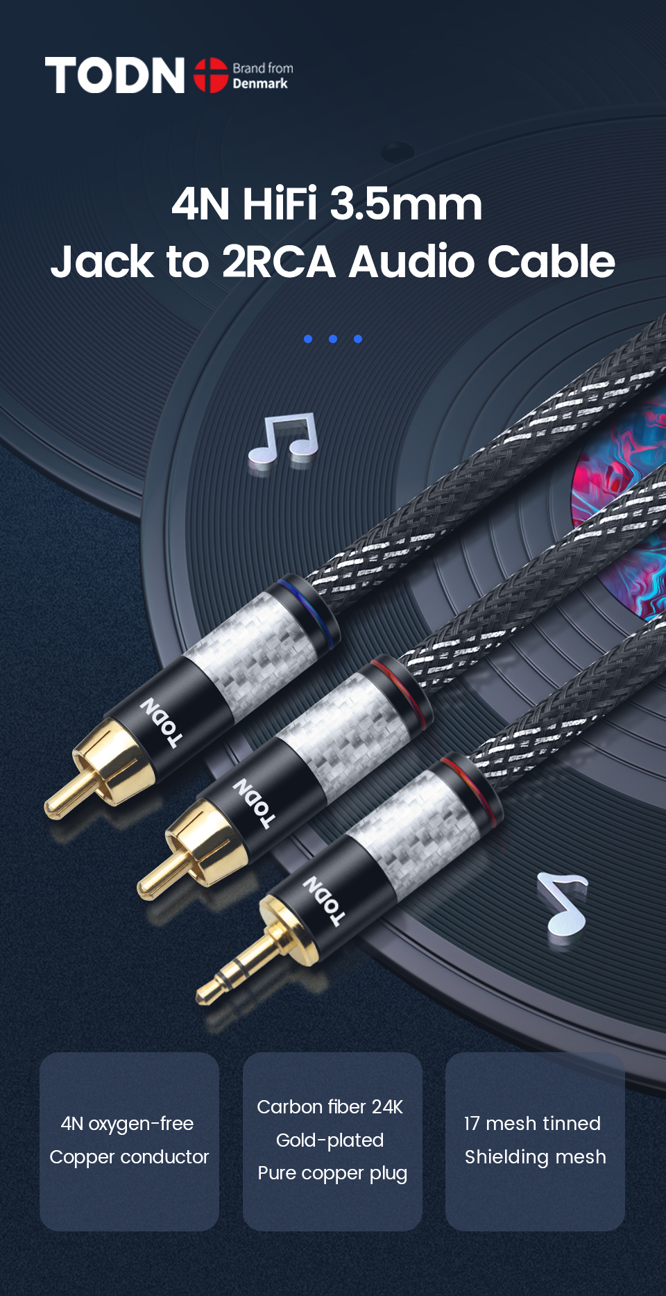 Кабель Todn 3,5 мм Jack 2RCA OFC