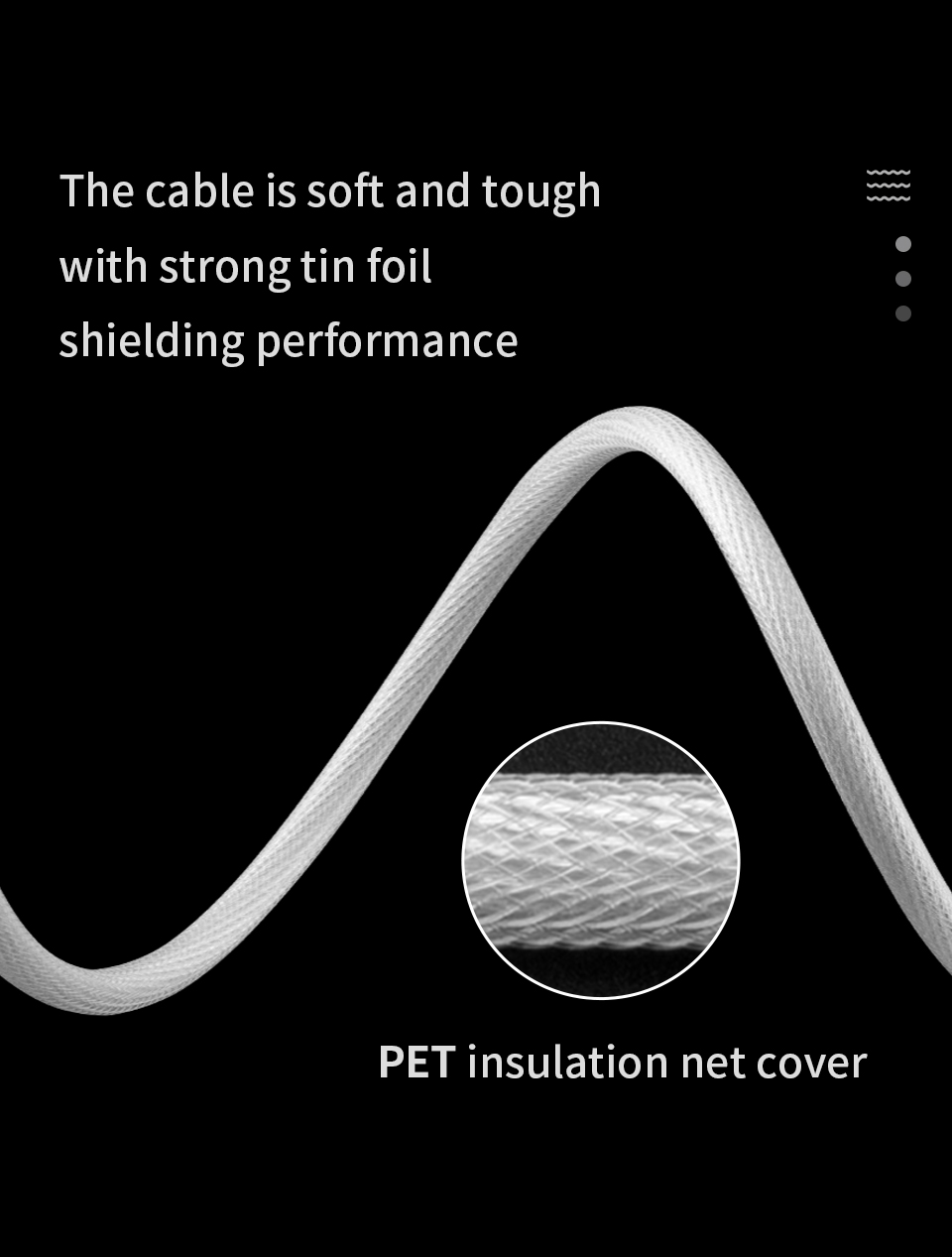 4. Наружная Защитная крышка: изолирующая сетка из ПЭТ, высокая прочность на разрыв, хорошая гибкость и увеличение срока службы кабеля.