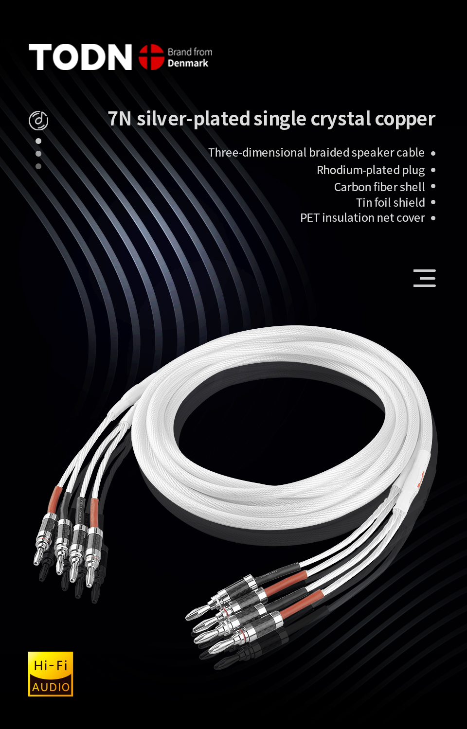 Todn 24-ниточный 7N монокристаллический медный посеребренный акустический кабель с введением.