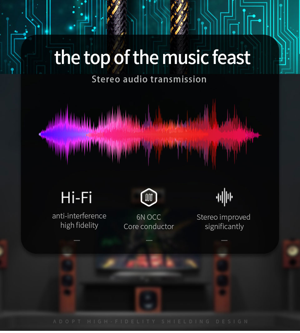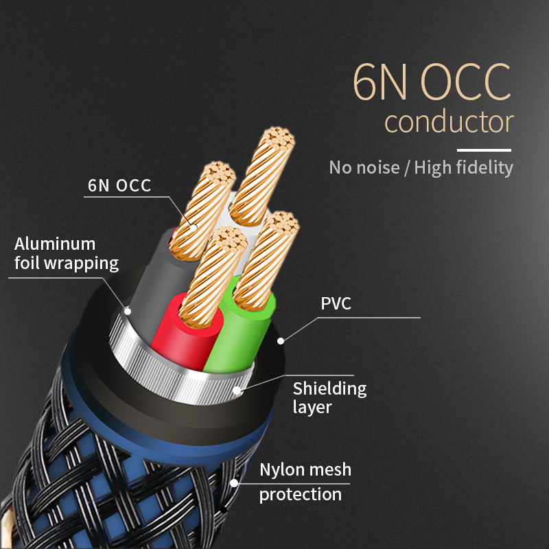 1. Кабель изготовлен из 6N одного кристаллического копердирижера, потеря сигнала очень низкая, передача сигнала очень стабильная, и богатые детали звука могут быть сохранены, вы чувствуете, что находитесь на месте.