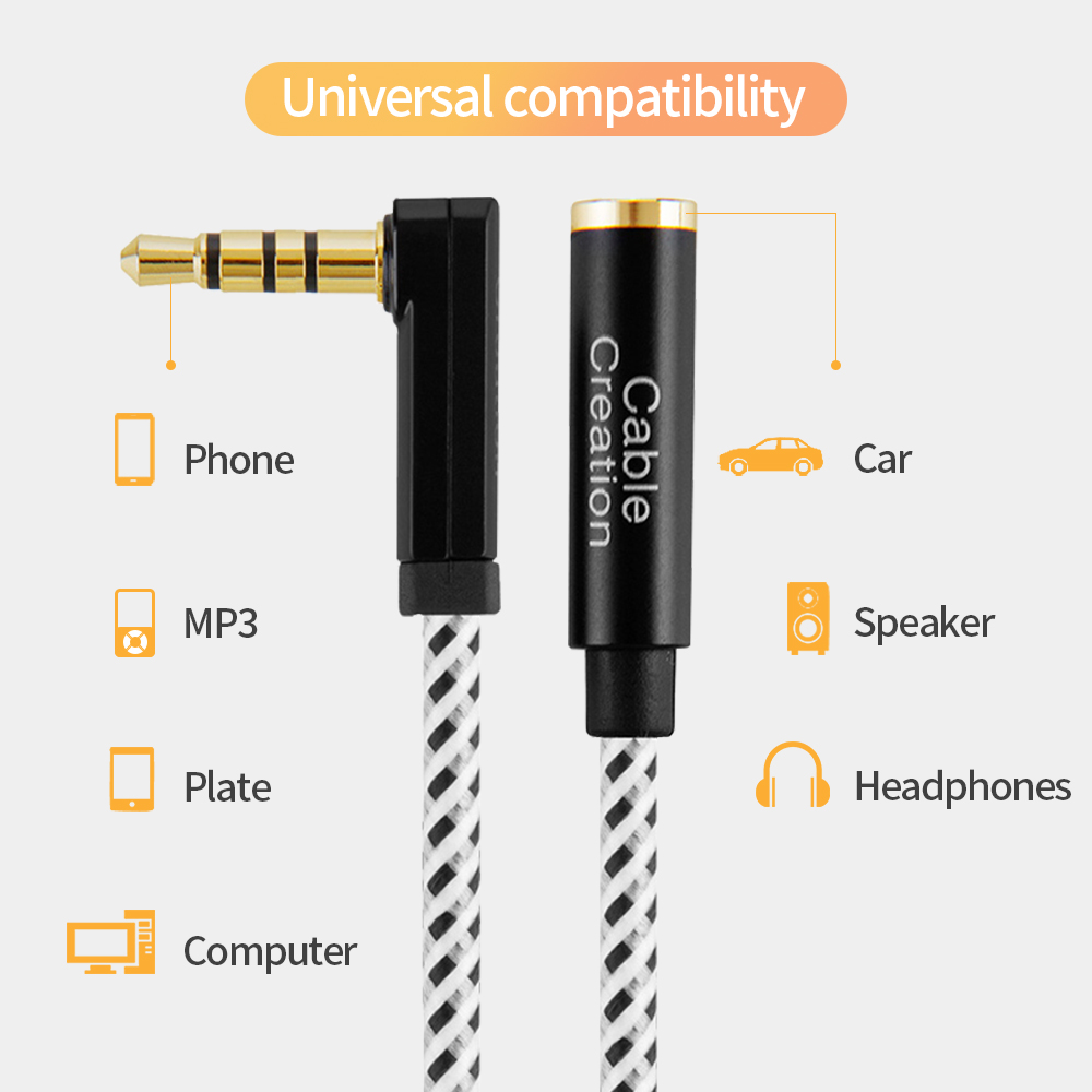 Прямоугольный разъем этого кабеля 3,5 мм «Папа-мама» позволяет подключаться к ограниченным пространствам и труднодоступным местам, где нормальный прямой разъем недоступен.