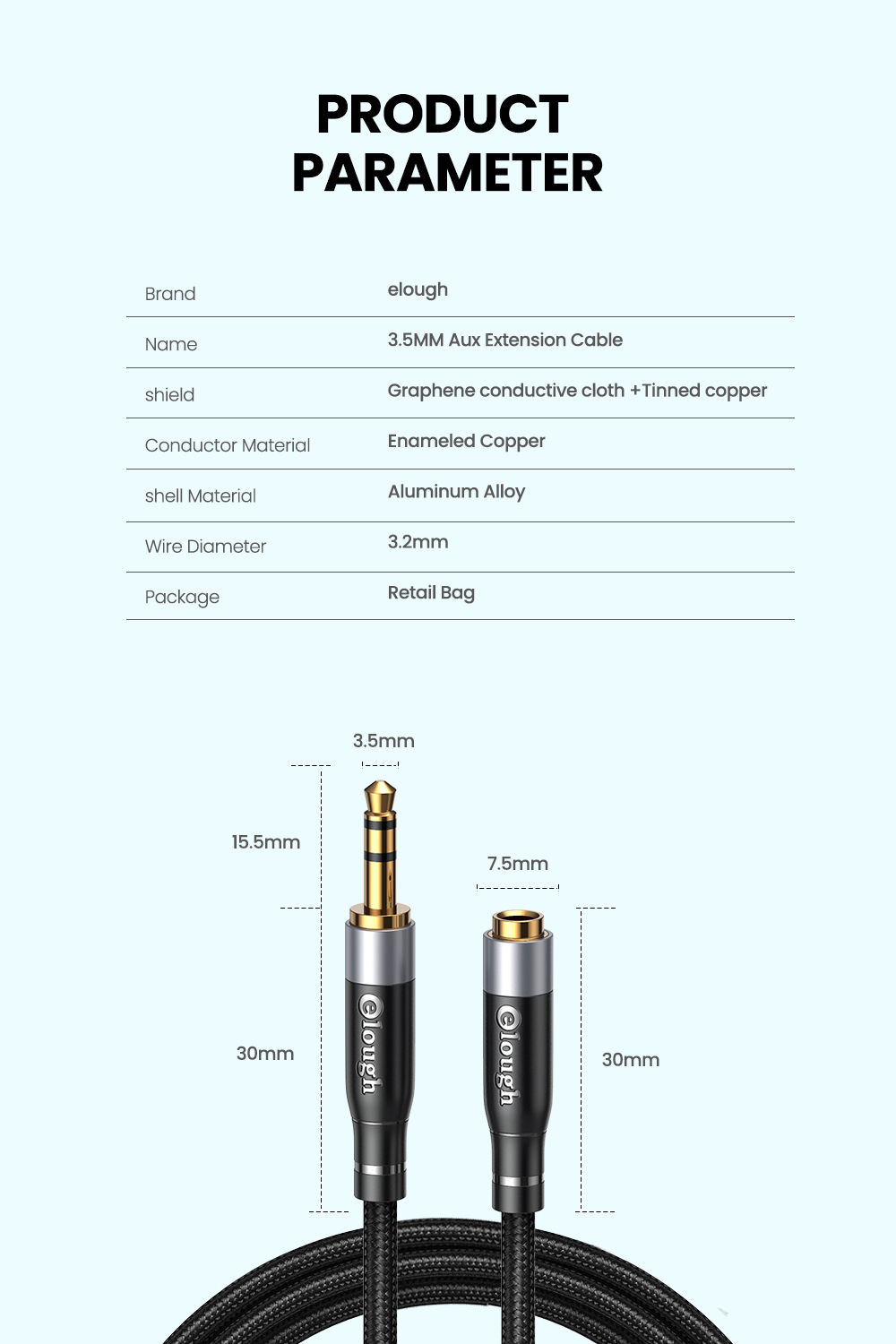 Кабель-удлинитель Elough со штекером на гнездо 3,5 мм