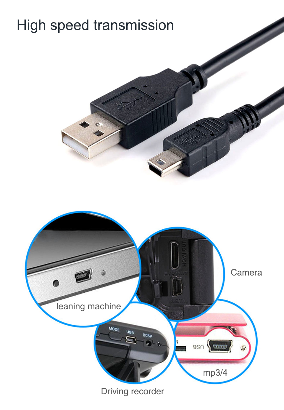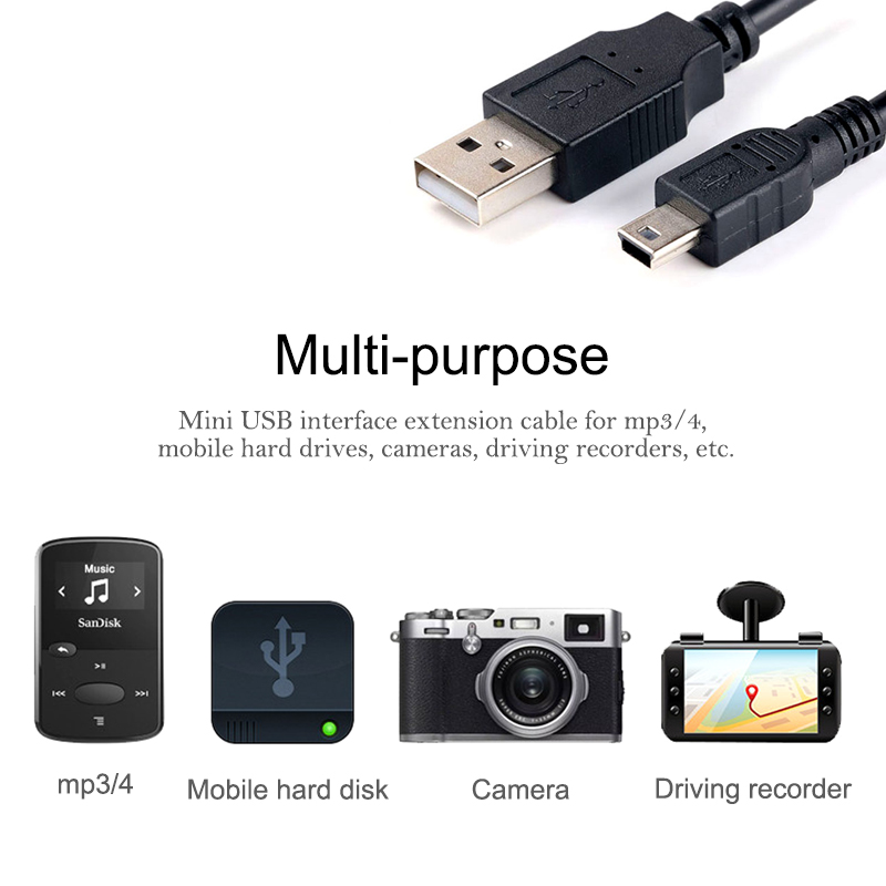 Mini USB 2.0 Cable  5Pin Mini USB to USB Fast Data Charger Cables for MP3 MP4 Player Car DVR GPS Digital Camera HDD Smart TV