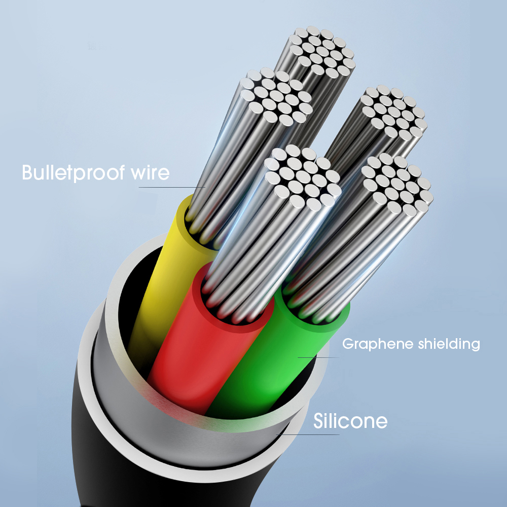 Материал: ПВХ, защитная сетка из луженой меди + двойное экранирование из алюминиевой фольги, сердечник из чистой медной проволоки