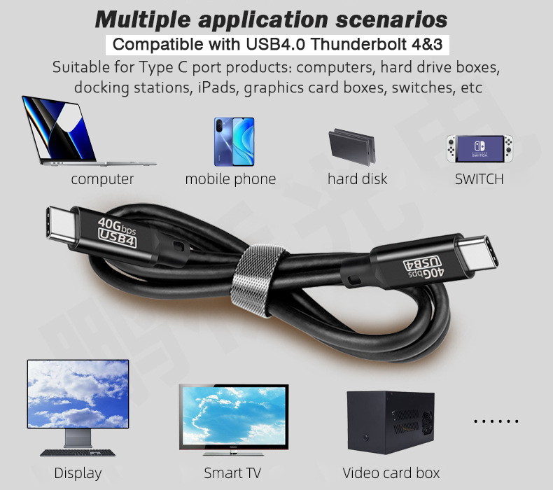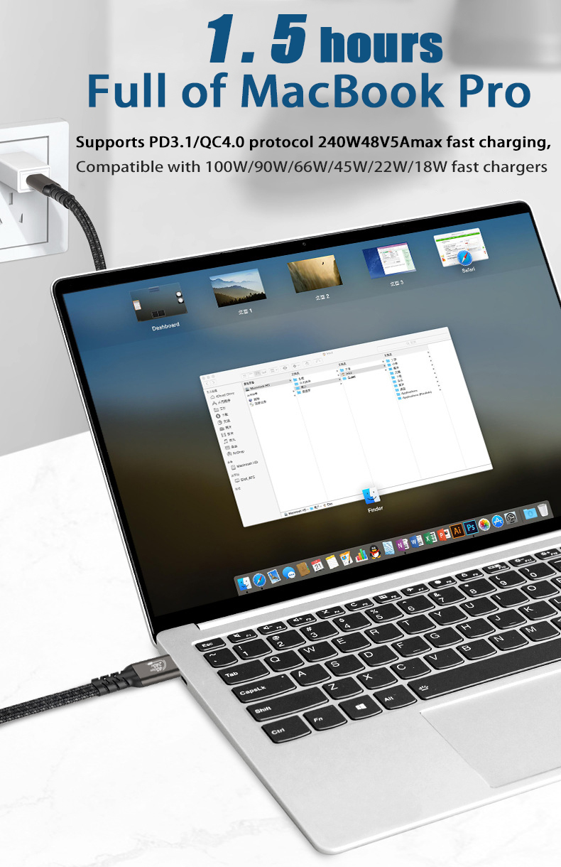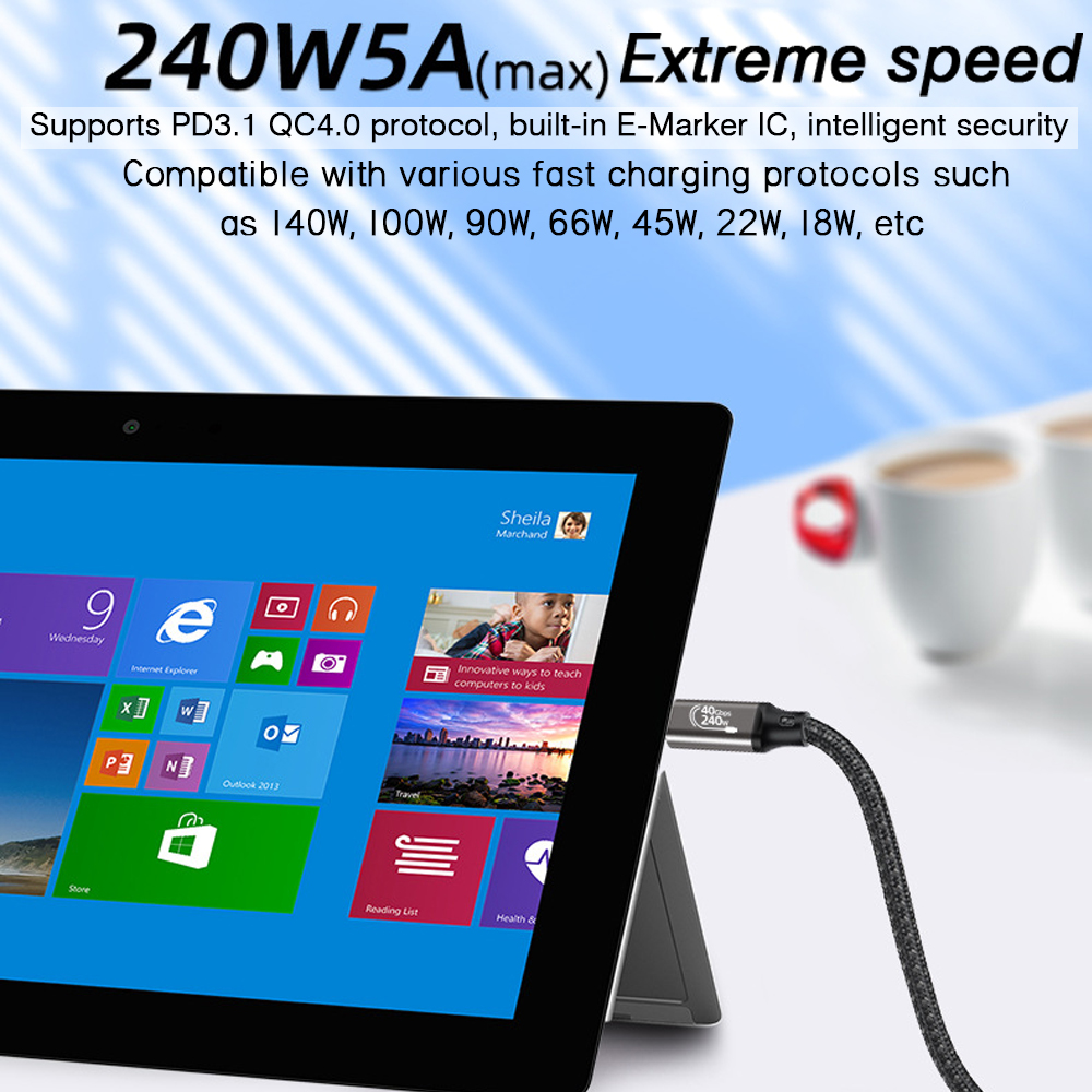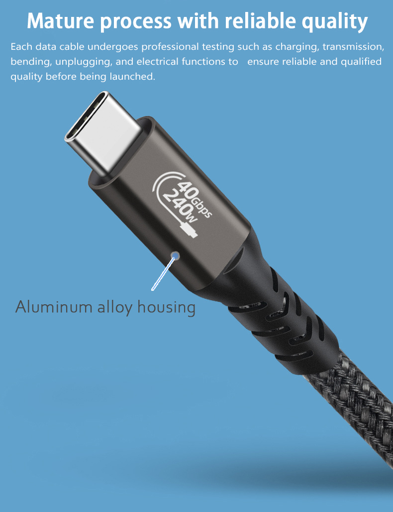 Кабель UGOURD USB 240 40 Гбит/с Thunderbolt 4, Вт, type c, сверхбыстрое зарядное устройство 5A, сверхвысокое разрешение, кабель для передачи данных 8K @ 60 Гц