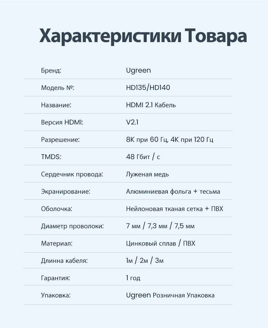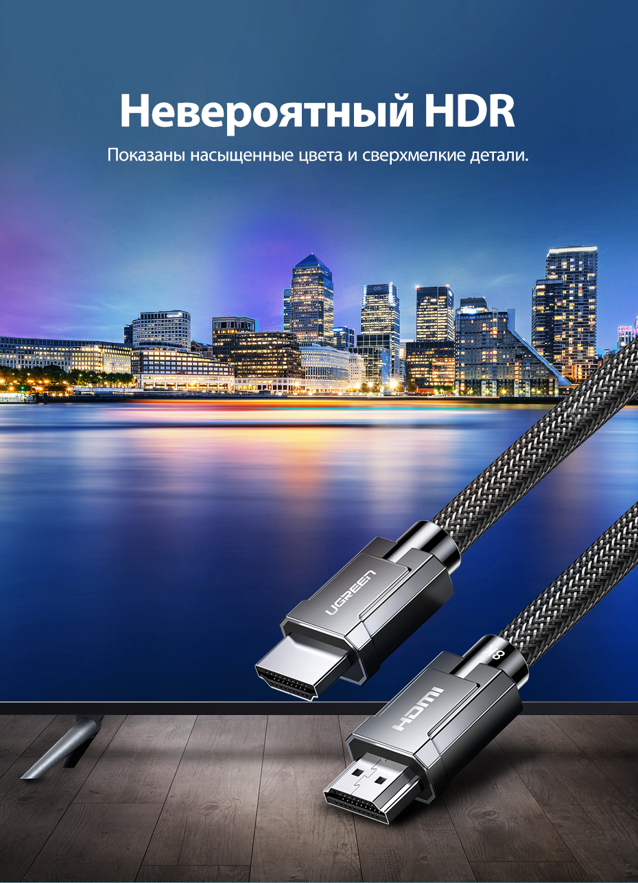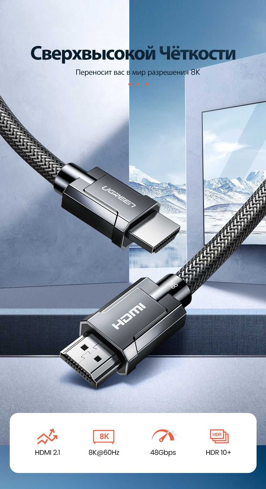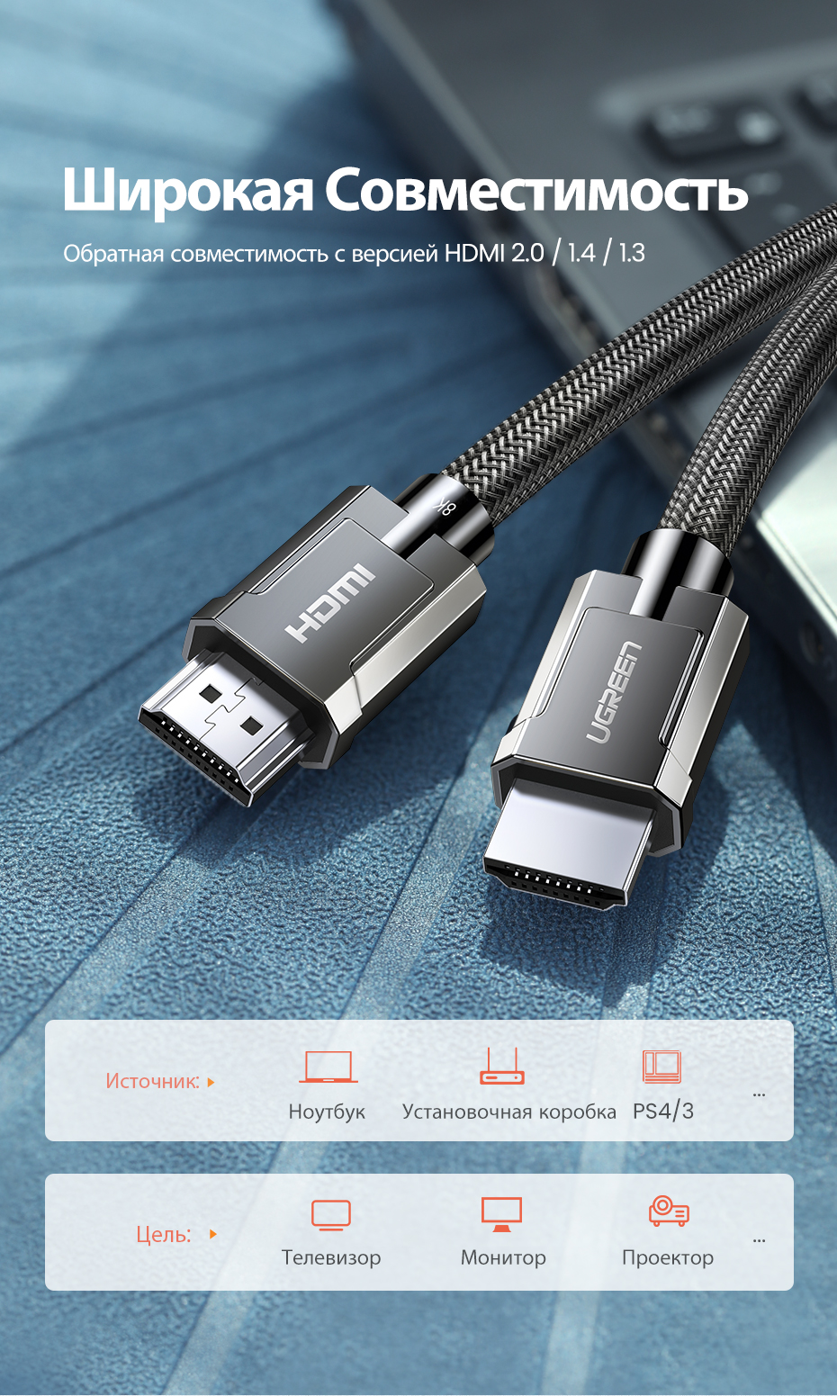 Кабель UGREEN HDMI 2,1 обратно совместим с 2,0, 1,4, 1,2 и т. Д. Это