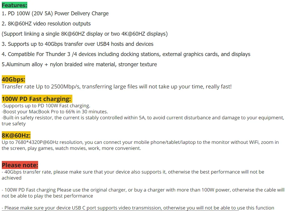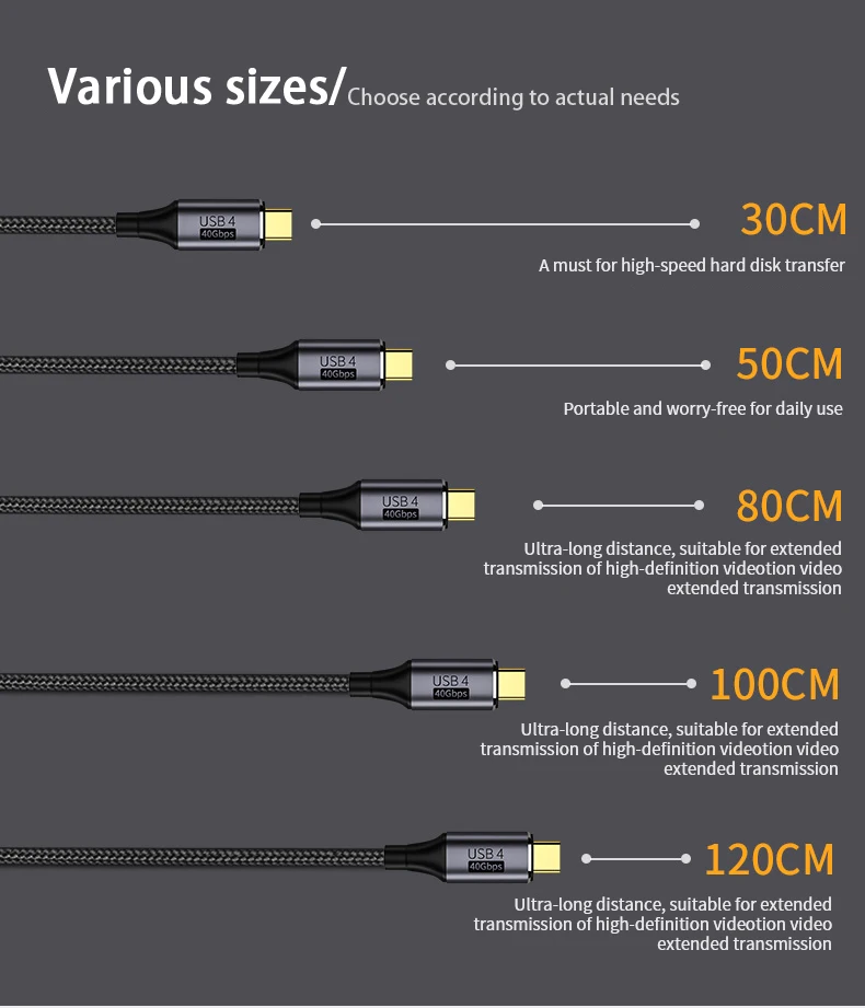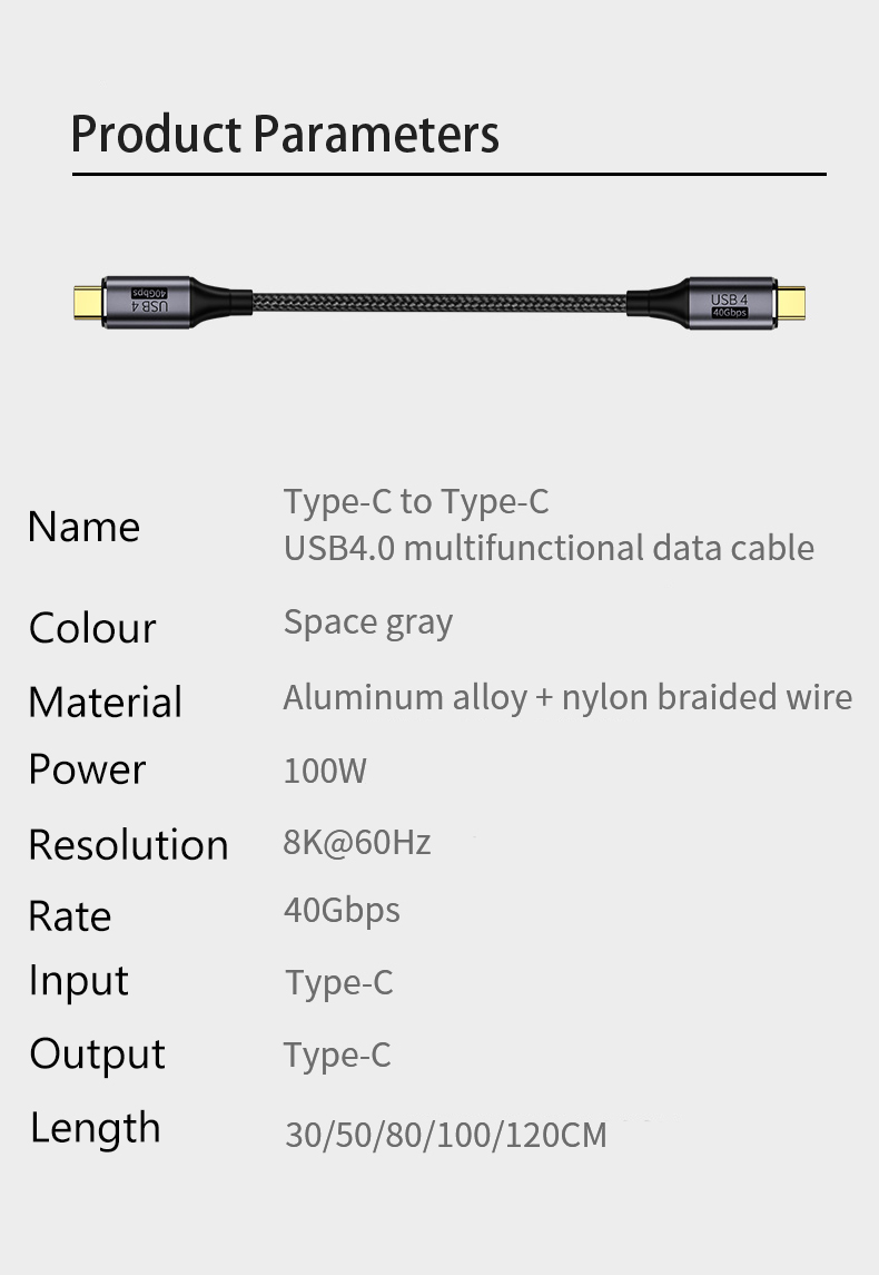 Кабель USB 100 с USB C на Type C, 40 Гбит/с, 8K, 60 Гц