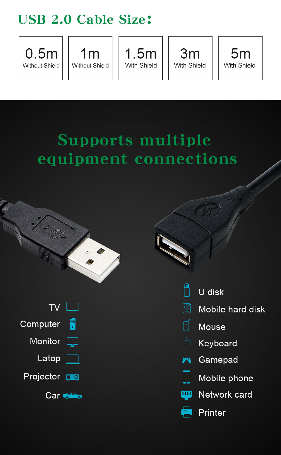 2. Универсальный дизайн с гнездом USB, антиокислительный, интерференционный, многослойное экранирование;