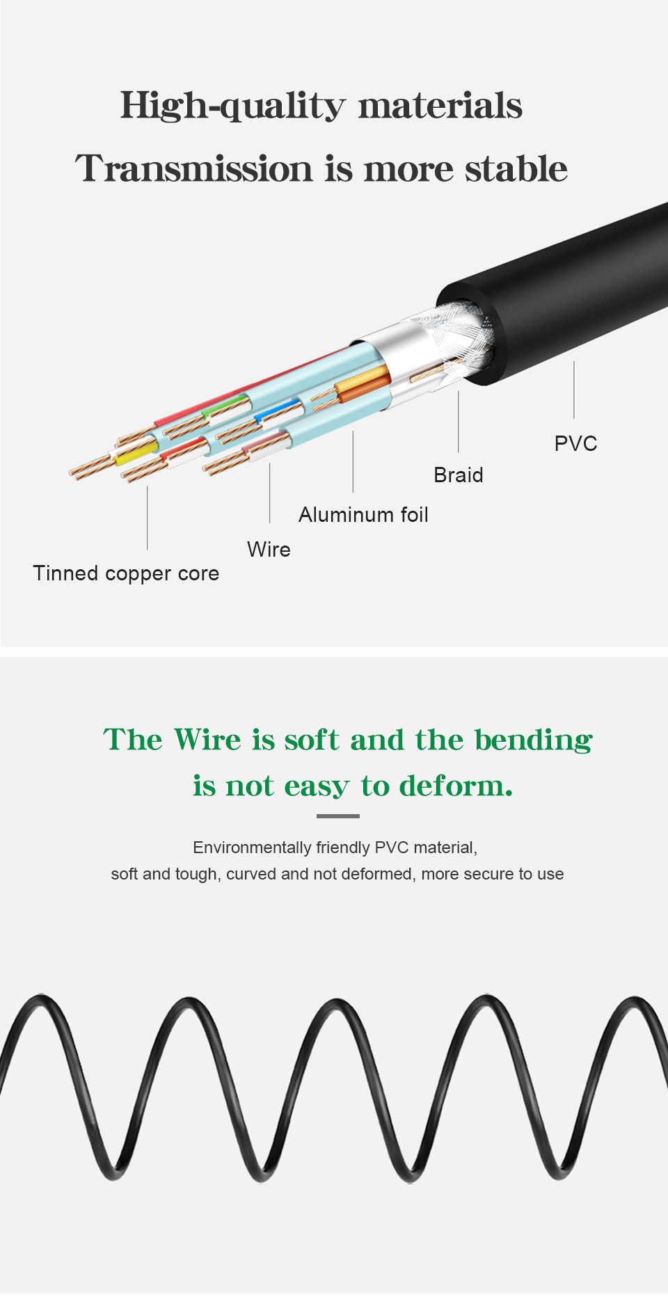 4. Проводной сердечник из высококачественной бескислородной меди, увеличивает поверхность передачи сигнала продукта, продлевает срок службы продукта;