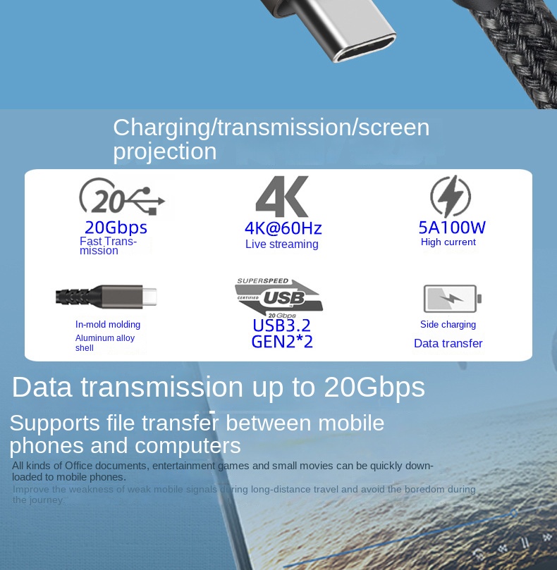 Название продукта: Тип-c двойной Мужской кабель для передачи данных 4K экран проекция потокового вещания кабель USB3.20G чип PD100W5A алюминиевый корпус плетеный провод