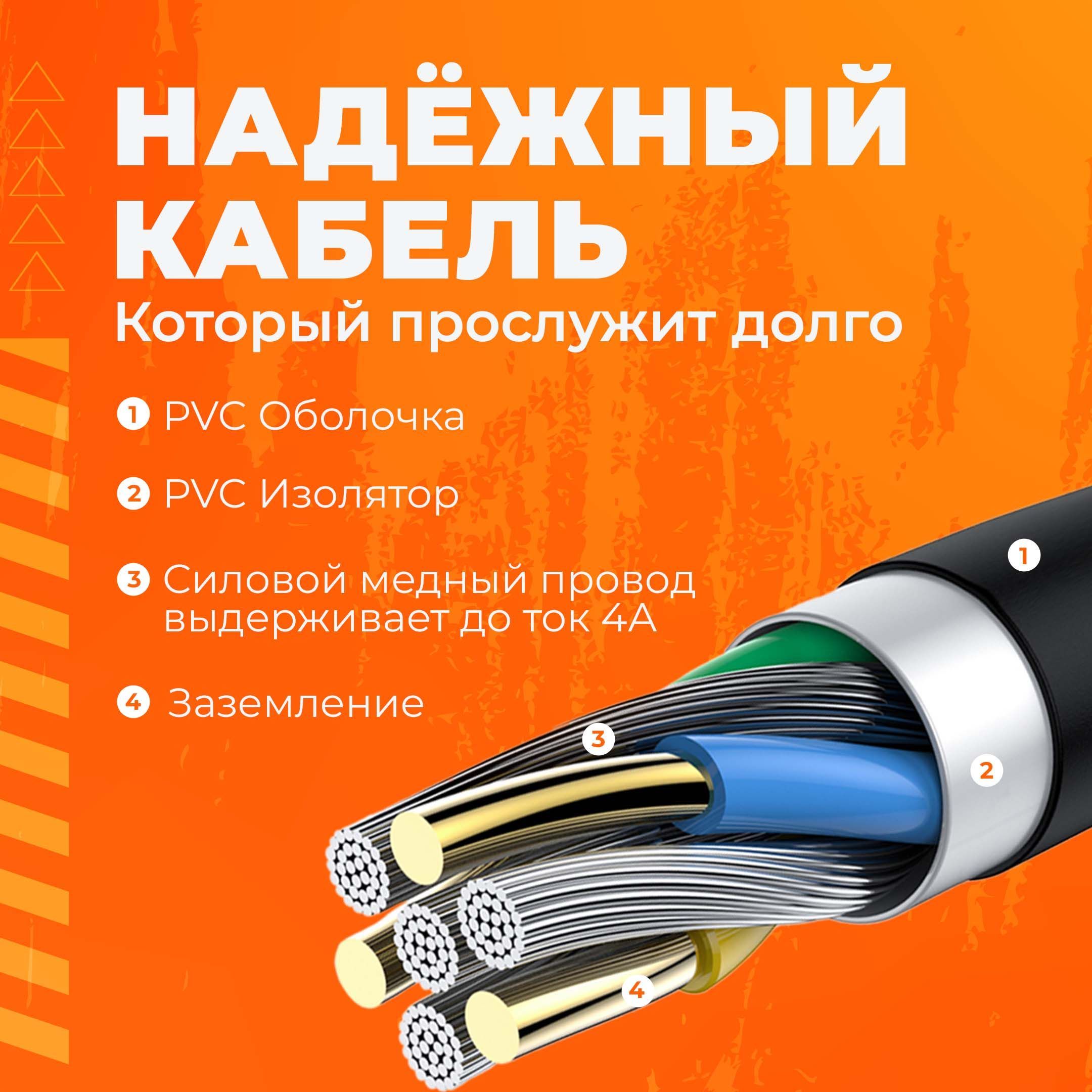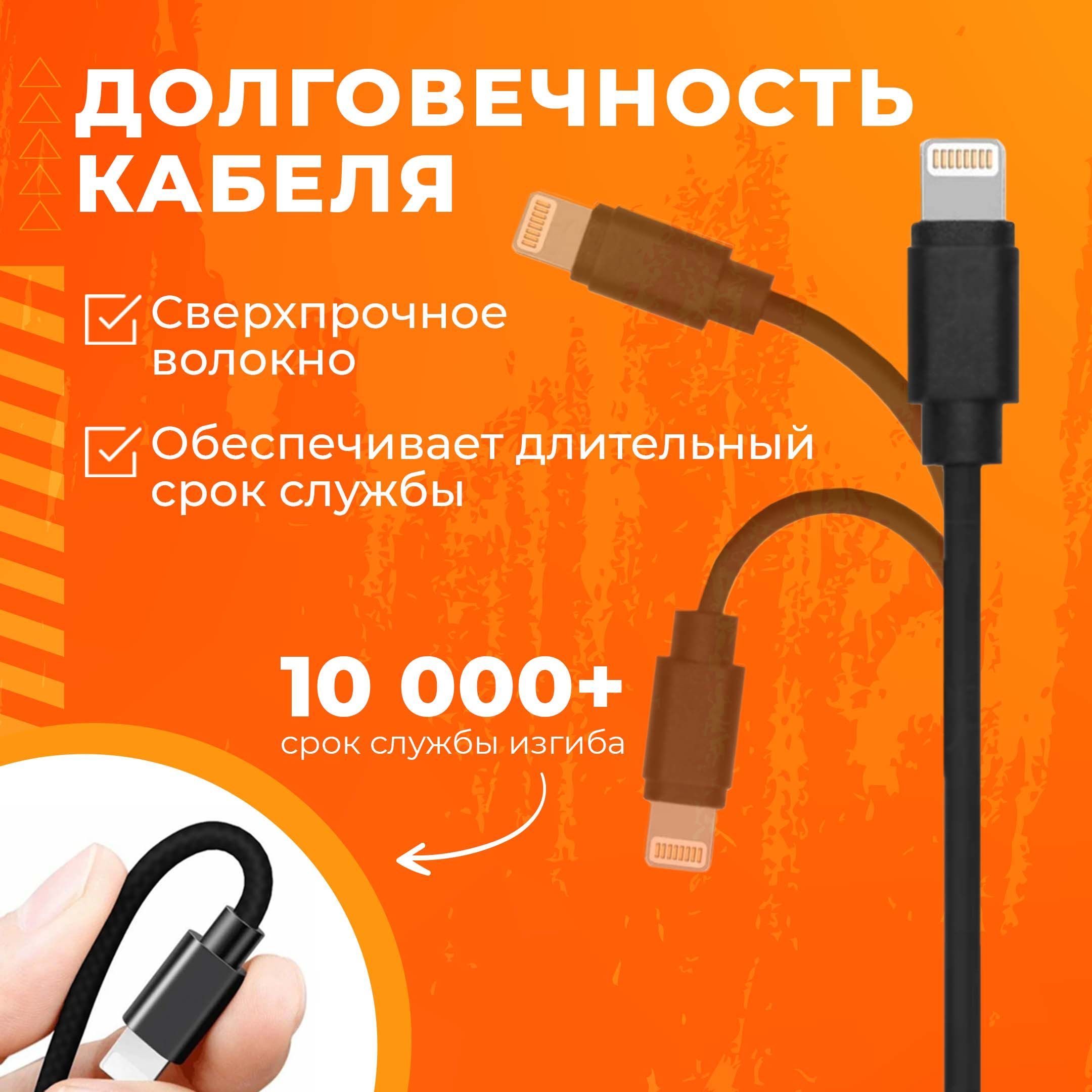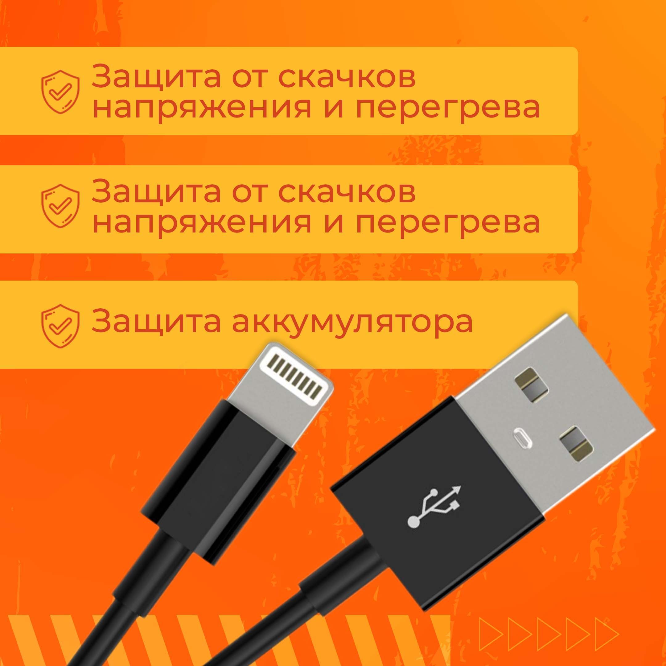Разъемы кабеля укреплены металлическими пластинами, которые предотвращают его быстрый износ, выпадение из гнезда, обеспечивают защиту от разрушающих процессов коррозии. Классическая сверхпрочная ПВХ-оплетка защищает провод от ряда повреждений: перегибов, скручиваний и заломов. Провод с медными жилами соответствует оптимальной длине - 1 метру. Гибкая основа без усилий складывается в жгут для хранения и транспортировки.Текст при отключенной в браузере загрузке изображенийПрочныйзащищен от перегибов, скручиваний и заломовТекст при отключенной в браузере загрузке изображенийОптимальная длина1 метрТекст при отключенной в браузере загрузке изображенийУниверсальныйсовместим со многими устройствамиТекст при отключенной в браузере загрузке изображенийБезопасныйзащищает от скачков напряженияТекст при отключенной в браузере загрузке изображенийПровод для AppleСовместим с техникой Apple (ноутбуками, смартфонами, наушниками, часами и т.п.). Может подключаться к адаптерам питания для дальнейшей зарядки от сети 220 В.