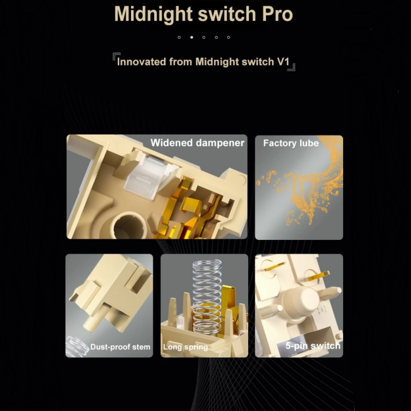 Kailh Midnight Switch Pro 5-контактный MX Переключатель, бесшумный механический переключатель клавиатуры, линейный тактильный