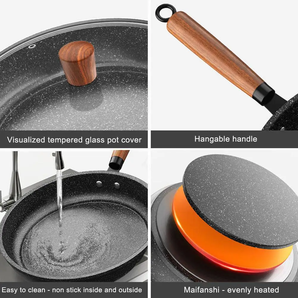 Каменная сковорода Maifan, сковорода с антипригарным покрытием, домашняя сковорода, железная сковорода, сковорода, сковорода без общего газа, масляная кастрюля с плитой для индукционной готовки S K5M6