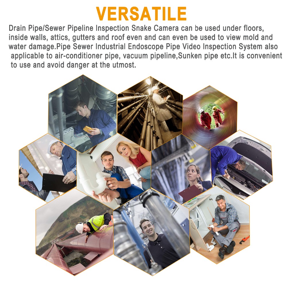 Универсальный】: Дренажная труба/канализационный трубопровод инспекционной змеиной камеры может использоваться под полом, внутри стен, чердаков, желобов и крыши даже и может быть использован для просмотра плесени и повреждения воды. Труба канализационная промышленная эндоскопическая труба видео система инспекции также применима к трубе кондиционера, Вакуумный трубопровод, затонувшая труба и т. Д. Удобно использовать и избегать опасности в максимальной степени.