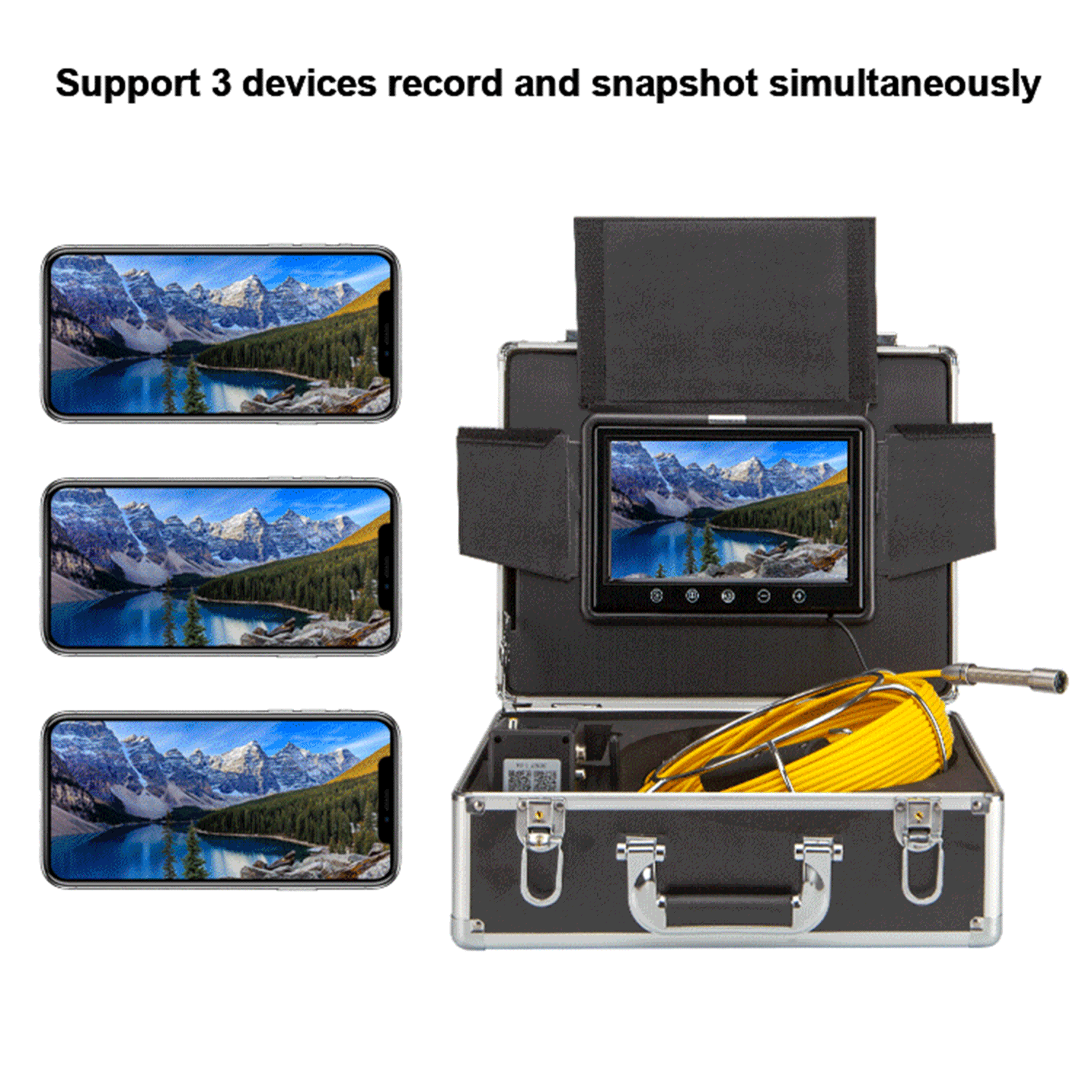 Портативная переносная чехол и длинная батарея】: Трубопровод настенный канализационный инспекционный комплект для камеры со змеиным покрытием с сверхпрочной проложенной алюминиевой Чехол хранит все содержимое, удобно носить с собой. 12 В 4500 мА · ч литиевая батарея в комплекте поддерживает приблизительно 6 часов непрерывного использования.