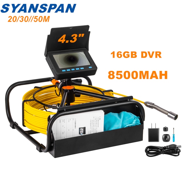 Камера для обследования труб с видеорегистратором, 16 ГБ, промышленный эндоскоп SYANSPAN для канализации, IP68, аккумулятор 8500MHA, 10/20/30/50 м