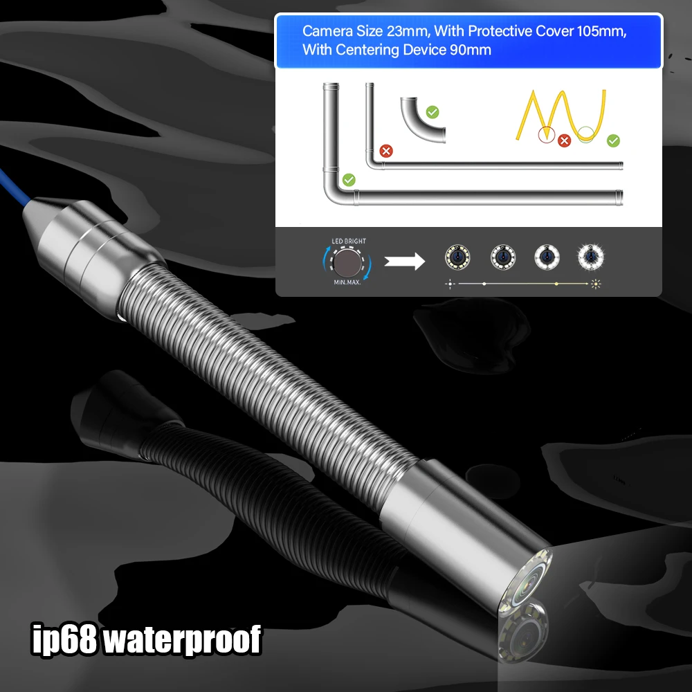 Профессиональная камера для осмотра дренажных труб/канализационных трубопроводов оснащена 10-дюймовым цветным ЖК-монитором IPS. Материал проволоки-Стекловолоконный стержень (диаметр: 7 мм), антикоррозийный/холодный/растяжимый.