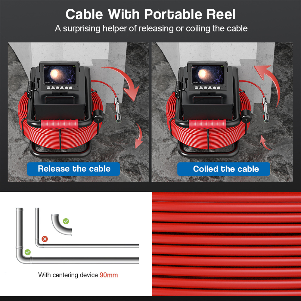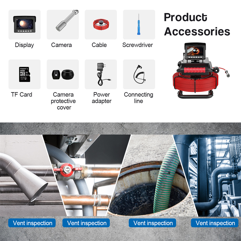 2. ФУНКЦИЯ ЗАПИСИ DVR: Встроенный слот для SD-карты для осмотра стены трубопровода и канализации, в комплект входит TF-карта на 16 ГБ, она позволяет просматривать видео и аудиозапись в реальном времени. Вы можете записывать проверки и воспроизведение (только для типа записи DVR)