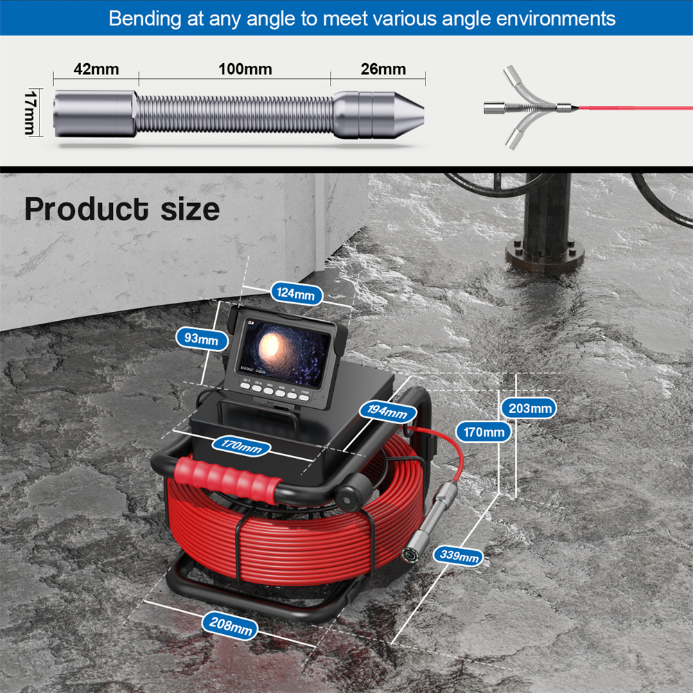 Канализационная эндоскопическая камера 16 ГБ Карта DVR IP68 Слив 17 мм Канализационные трубы Инспекция трубопроводов Промышленный Бороскоп с монитором 4,3
