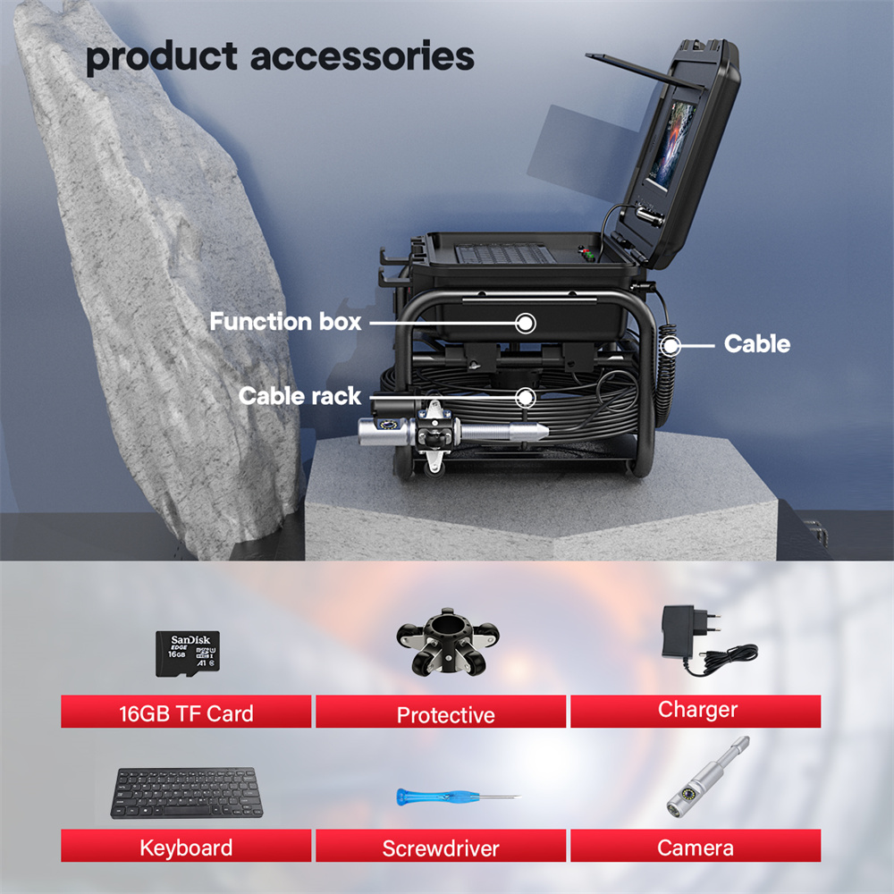 Профессиональная камера для осмотра дренажных труб/канализационных трубопроводов оснащена 9-дюймовым цветным ЖК-монитором IPS с солнцезащитным козырьком для осмотра на открытом воздухе. Материал проволоки-Стекловолоконный стержень (диаметр: 7 мм), антикоррозийный/холодный/растяжимый.