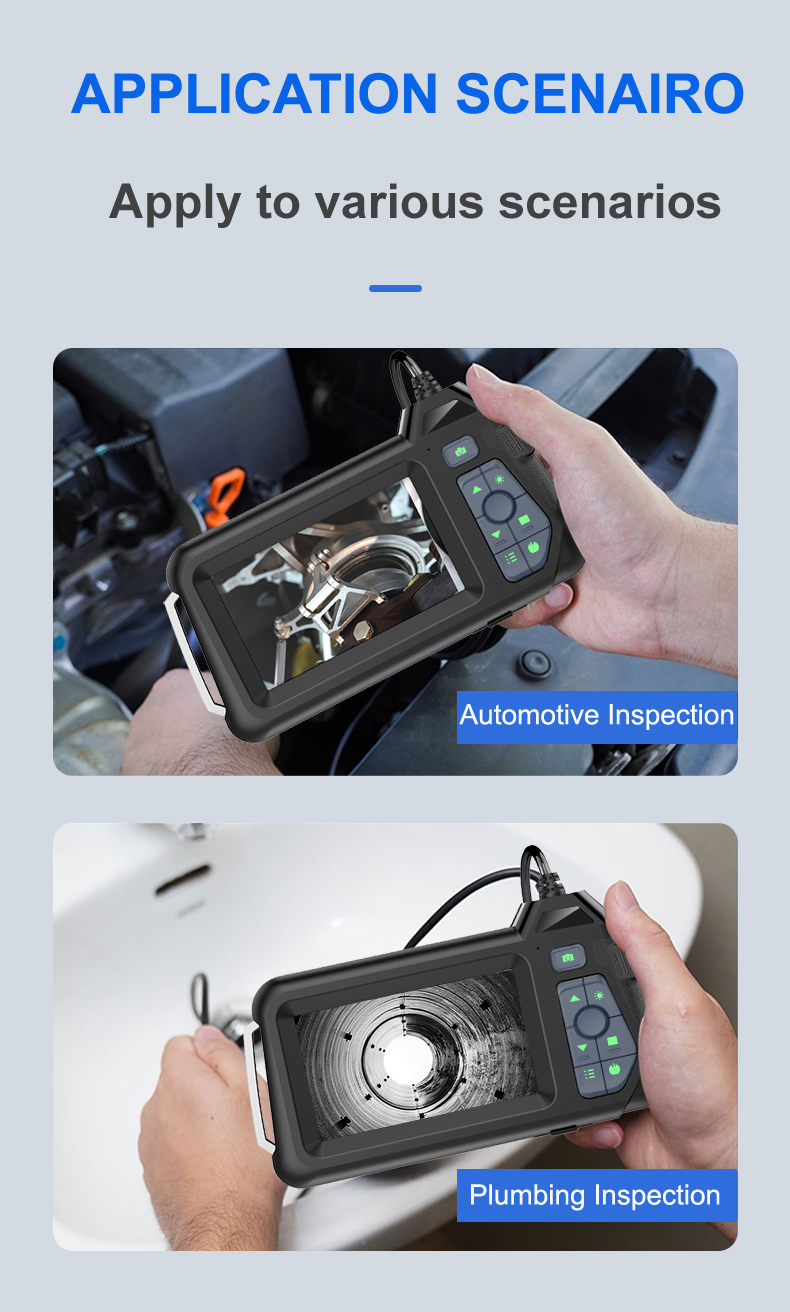3. [Универсальность и простота использования]:Камера для осмотра змеи с гибким полужестким кабелем 2 м/5 м, отлично подходит для различных видов осмотра, таких как ремонт автомобилей, промышленный механический осмотр, проверка стока, обнаружение линии, обслуживание бытовой техники, проверка конструкции стен, проверка канализационных стоков и т. д.