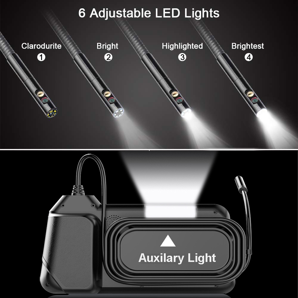 2. [Водонепроницаемый зонд камеры IP67 и светодиодные фонари]:Эта камера-Бороскоп с 6 сверхяркими светодиодами с 3 регулируемыми уровнями яркости, чтобы обеспечить достаточно света для более темных ситуаций. Зонд камеры и светодиодные фонари имеют Водонепроницаемость IP67, подходят для темных, влажных или влажных областей и т. Д.